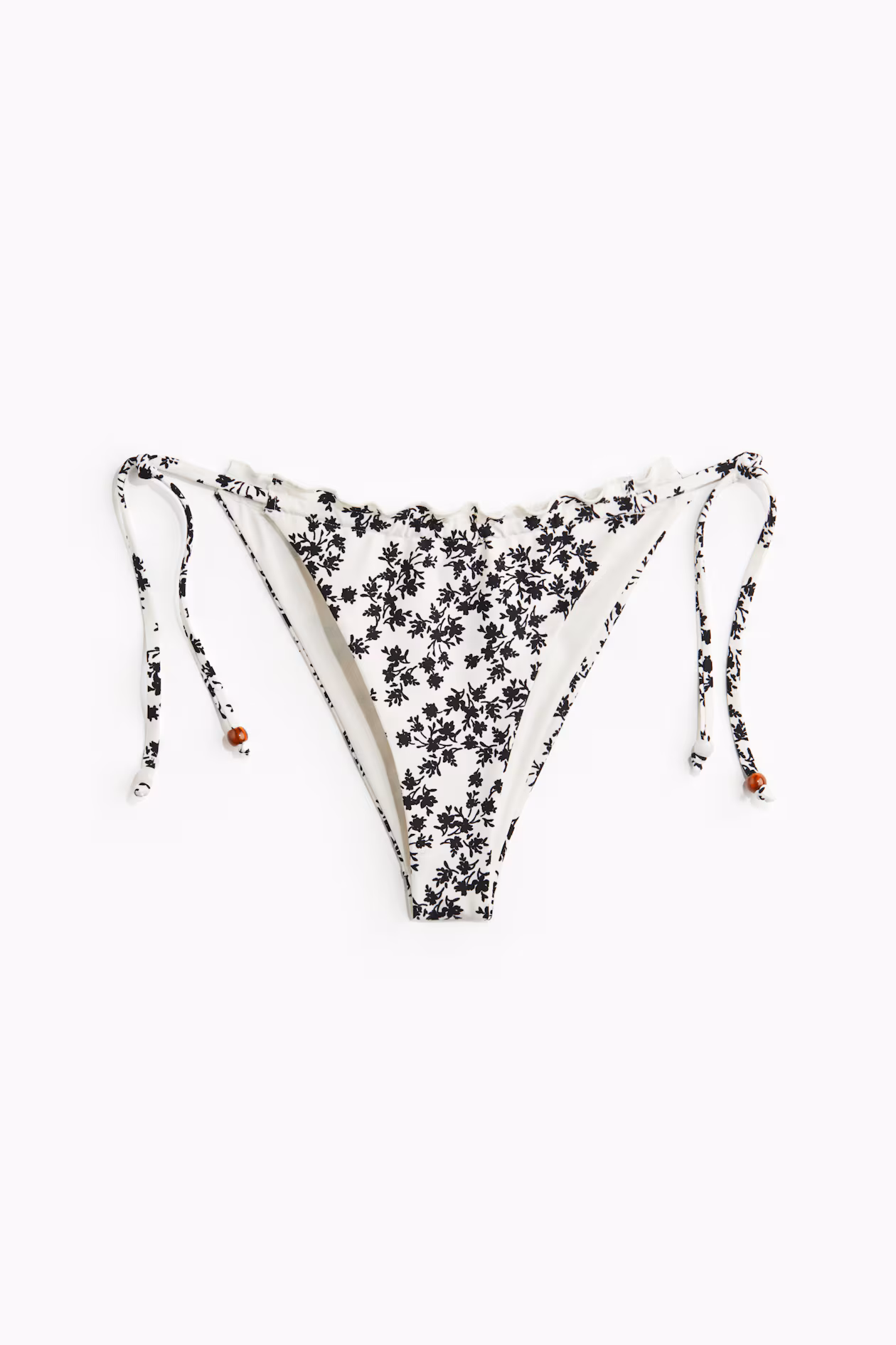 Fully lined bikini bottoms. Low, ruffle-trimmed waist, ties at sides, and cutaway coverage at back.