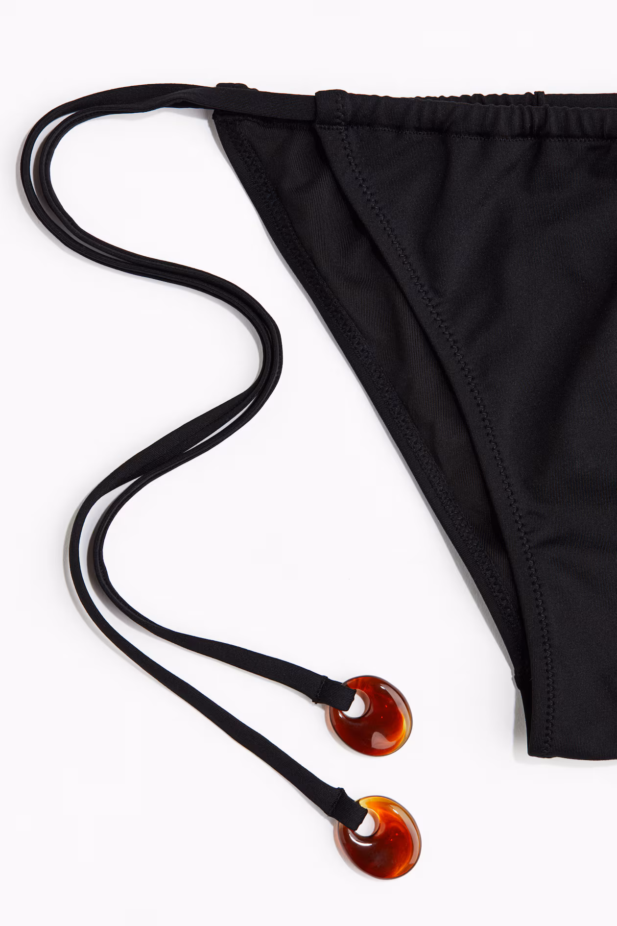 Fully lined bikini bottoms. Low waist, beaded-end drawstrings at sides, and cutaway coverage at back.