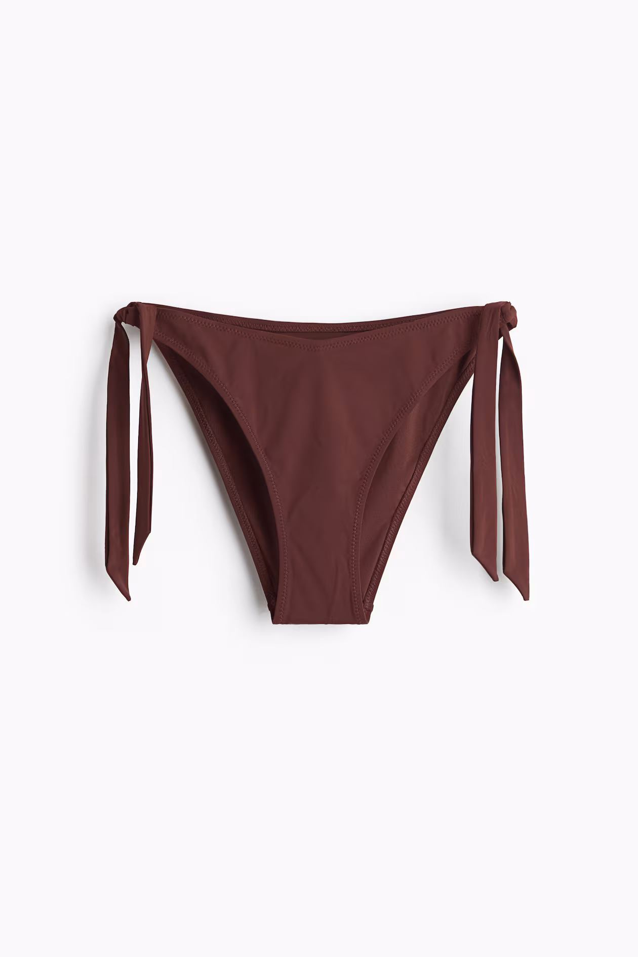 Fully lined bikini bottoms. Mid-rise, V-cut waist, ties at sides, and cutaway coverage at back.