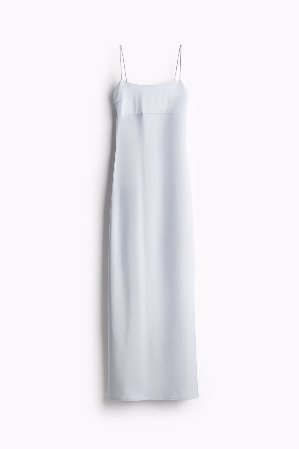 Fitted maxi dress in woven fabric. Adjustable, extra-narrow shoulder straps with ties threaded through loops at back. Square neckline at front, plunge back, and a concealed zipper at one side of bodice. High slit at one side of hem. Partly lined.
