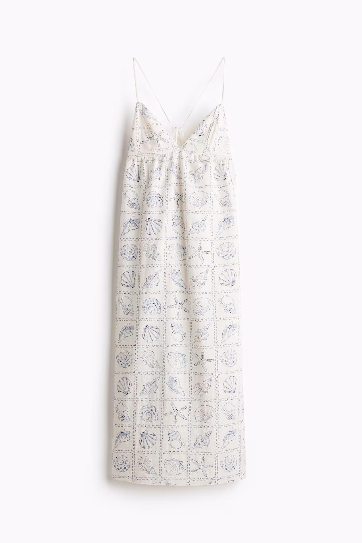 Long dress in woven fabric. Extra-narrow shoulder straps with ties threaded through loops at back. V-shaped neckline, slim fit at bust, and gathered, shaped, double-layer cups. Gently flared skirt.