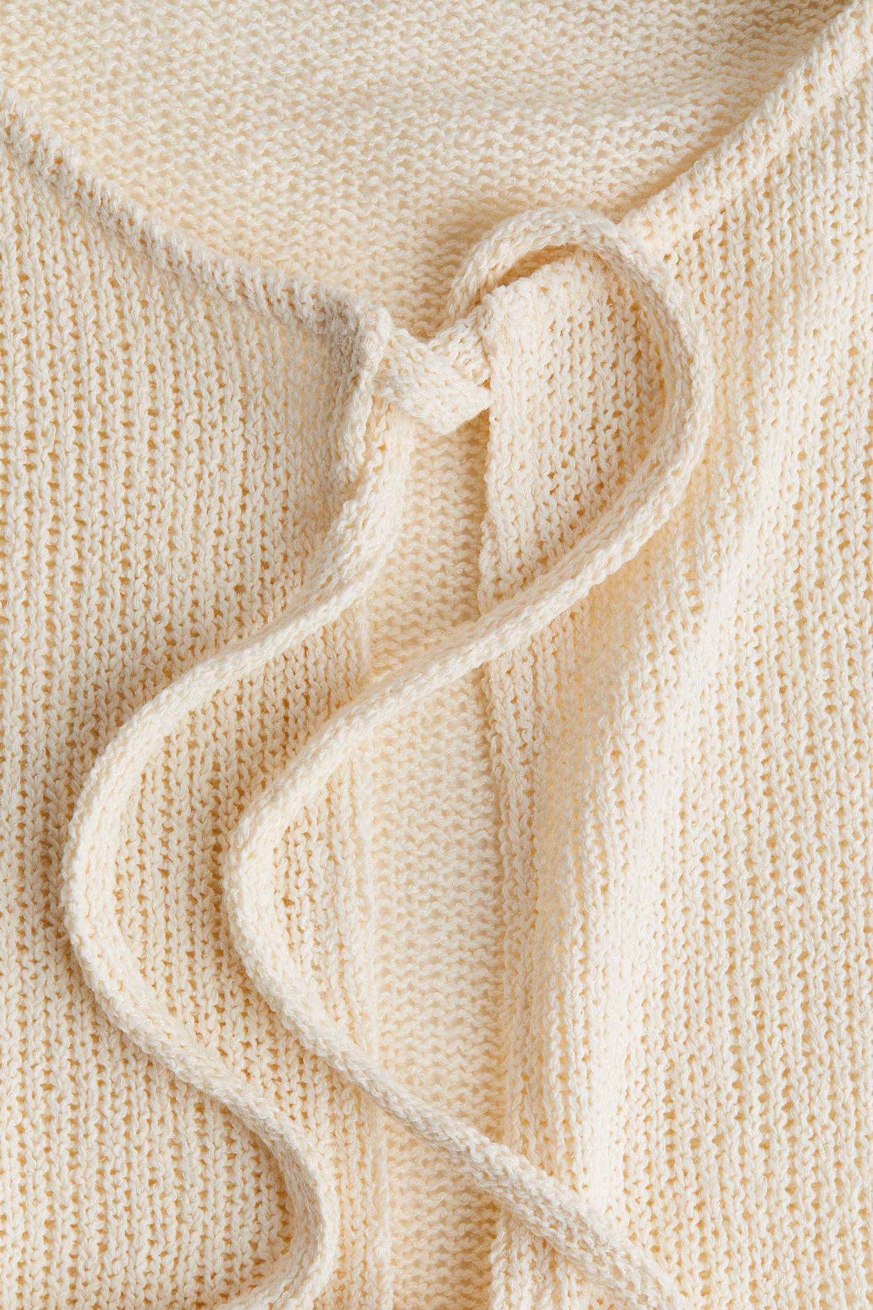 Short, fitted, sleeveless top in a soft knit. Round neckline, open front with three sets of narrow ties, and a flared peplum.