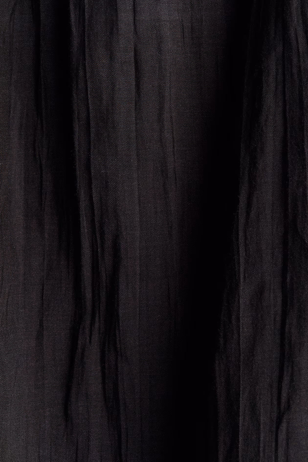 Long beach dress in woven fabric. Extra-narrow, tie-top shoulder straps with beaded ends, ruffle-trimmed upper edge, and smocking at top. Straight-cut hem with a high slit at sides.