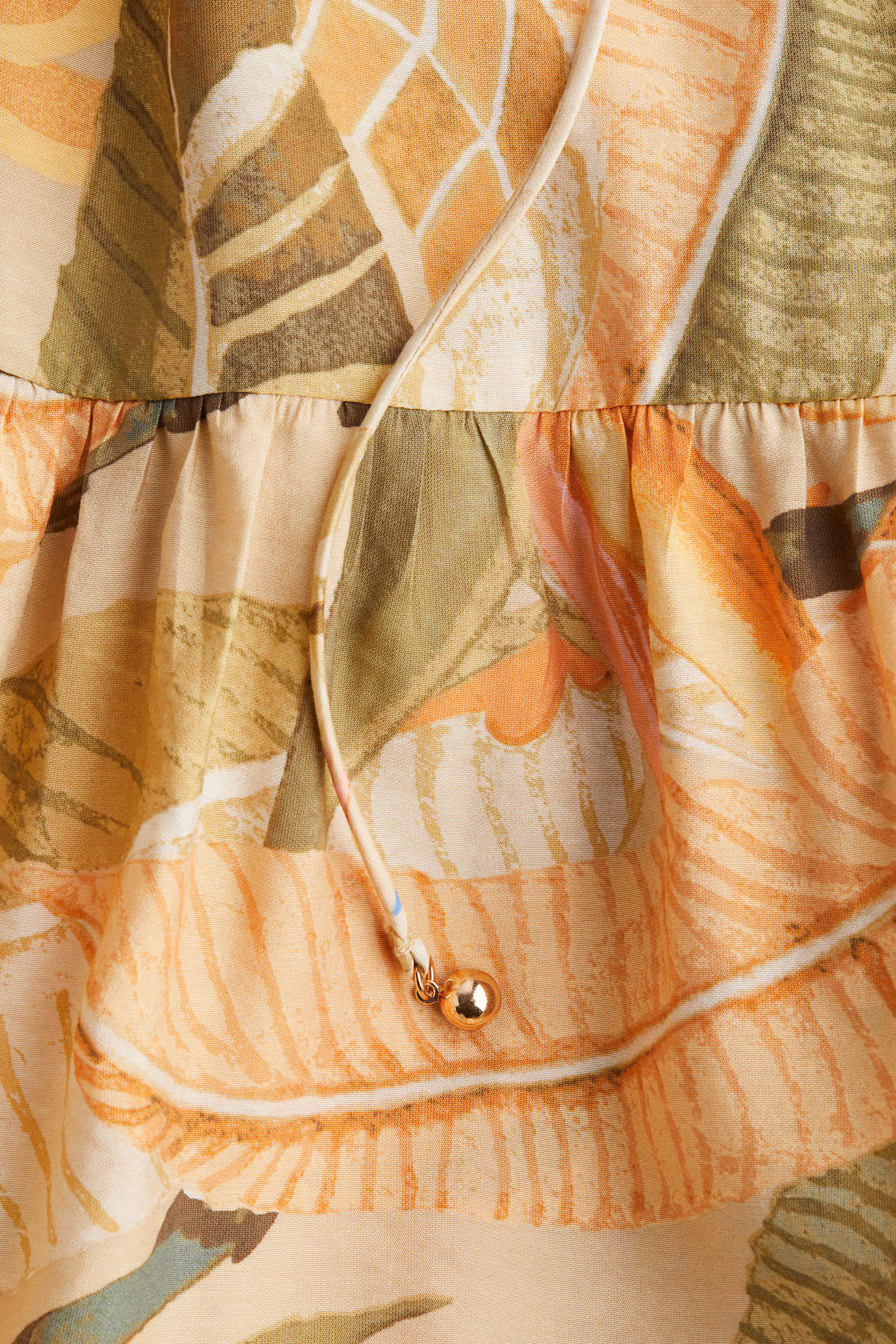 Long, flared dress in woven fabric. Extra-narrow, tie-top shoulder straps, straight neckline, and narrow elastic at back. Gathered tiers for added volume.