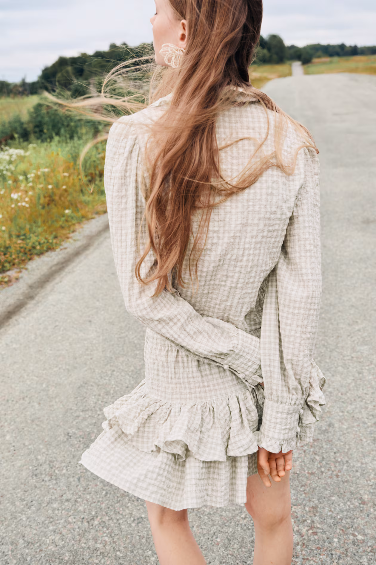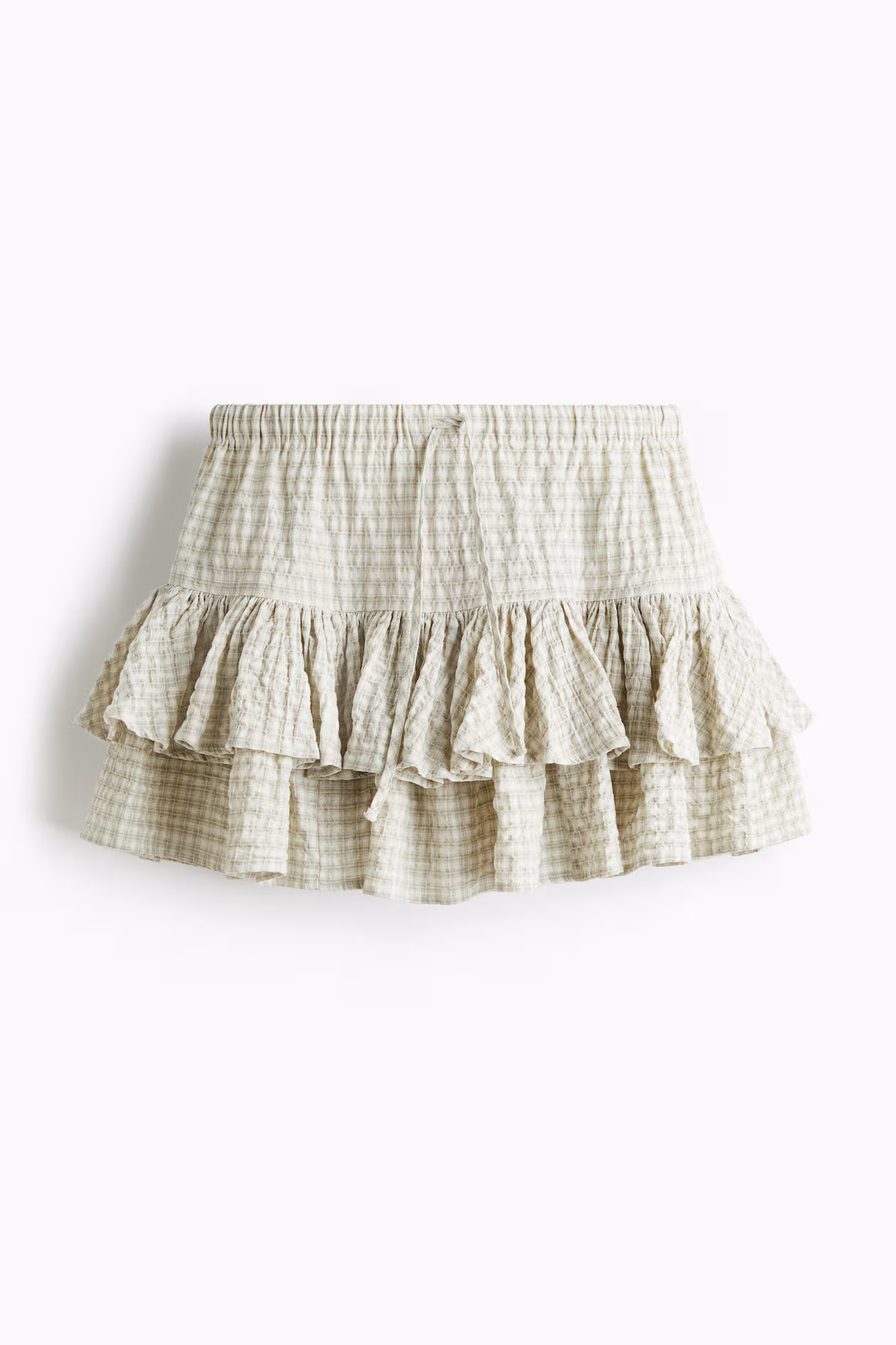 Tiered mini skirt in soft woven fabric. High waist with a narrow drawstring and covered, elasticized waistband.