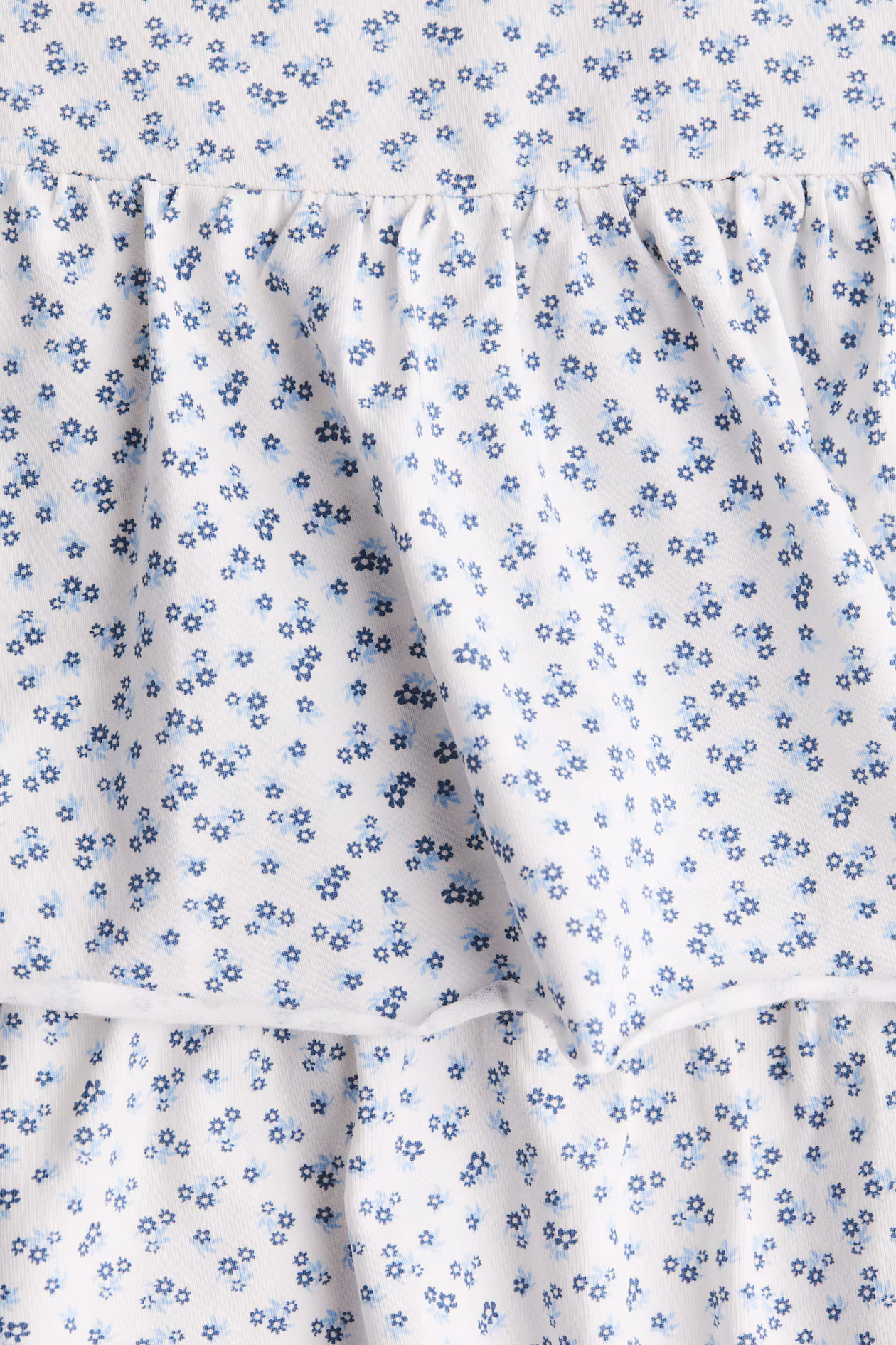 Loose-fit mini skirt in soft cotton jersey. Double-layered waistband, gathered seam over hips, and gathered, rolled-edge tiers for added volume.
