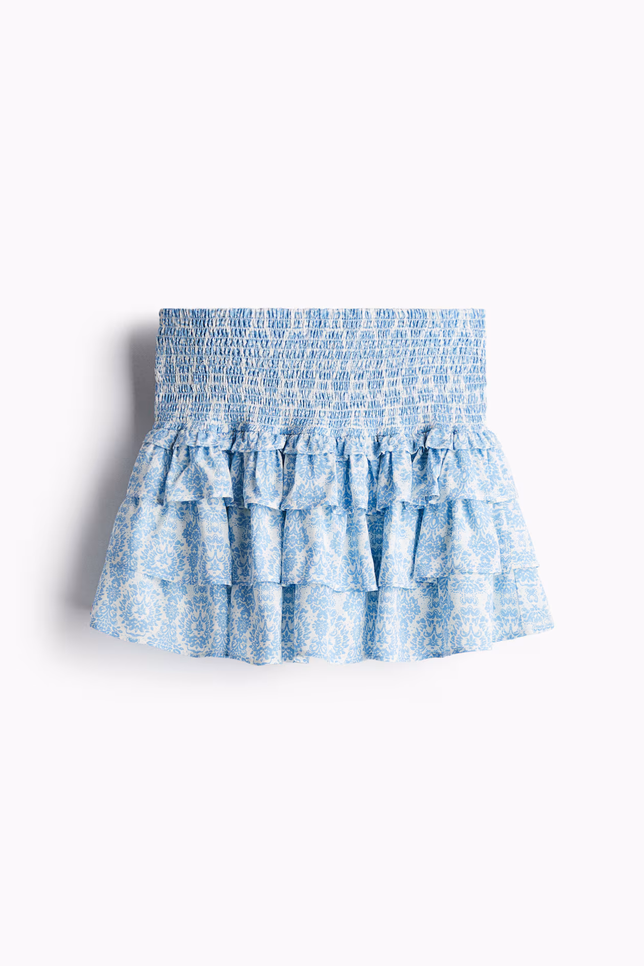 Tiered mini skirt in woven fabric with liner shorts. Smocked, ruffle-trimmed waistband.