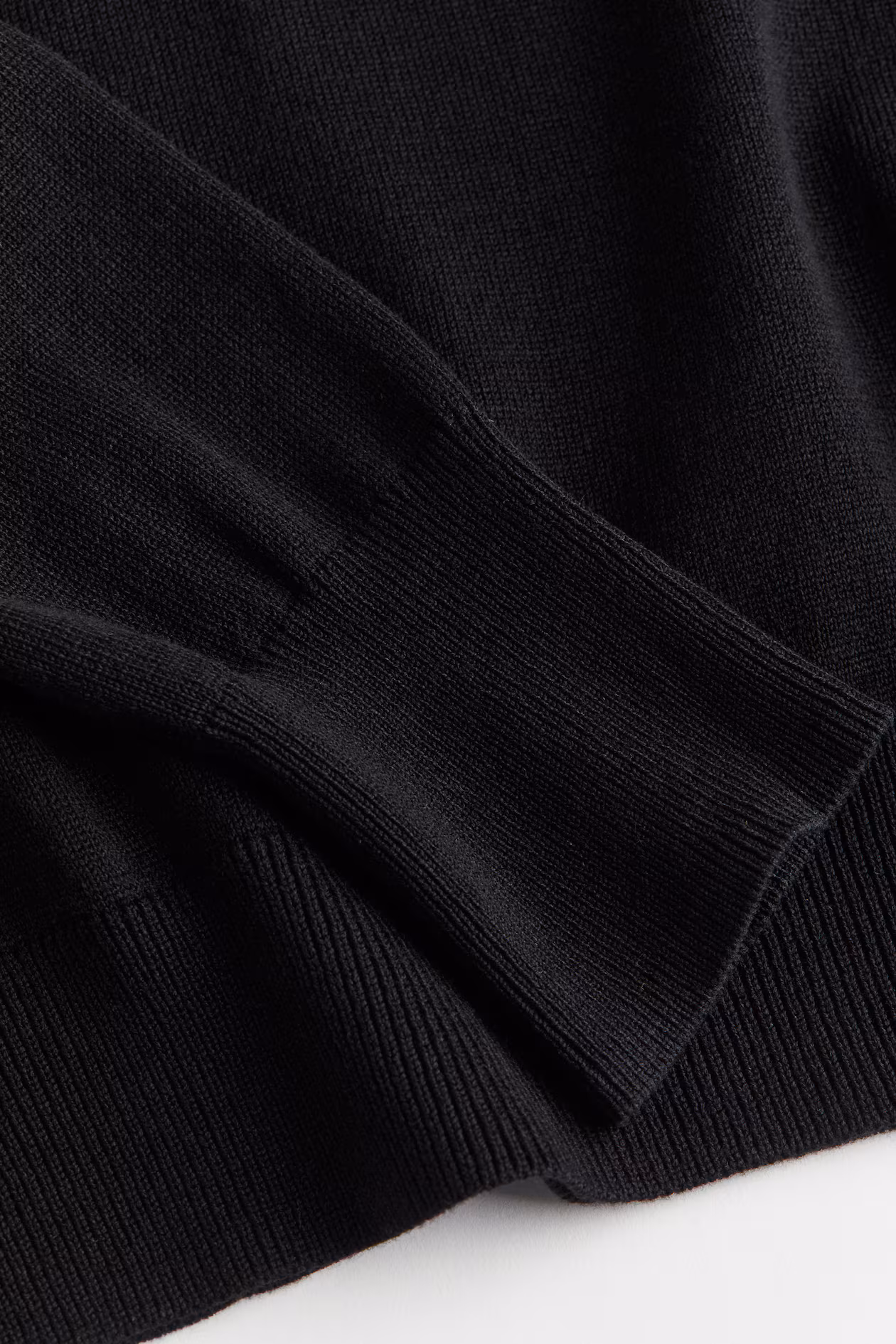 Soft, fine-knit sweater in a viscose blend. Turtleneck, long sleeves, and a straight hem. Ribbing at neck, cuffs, and hem.