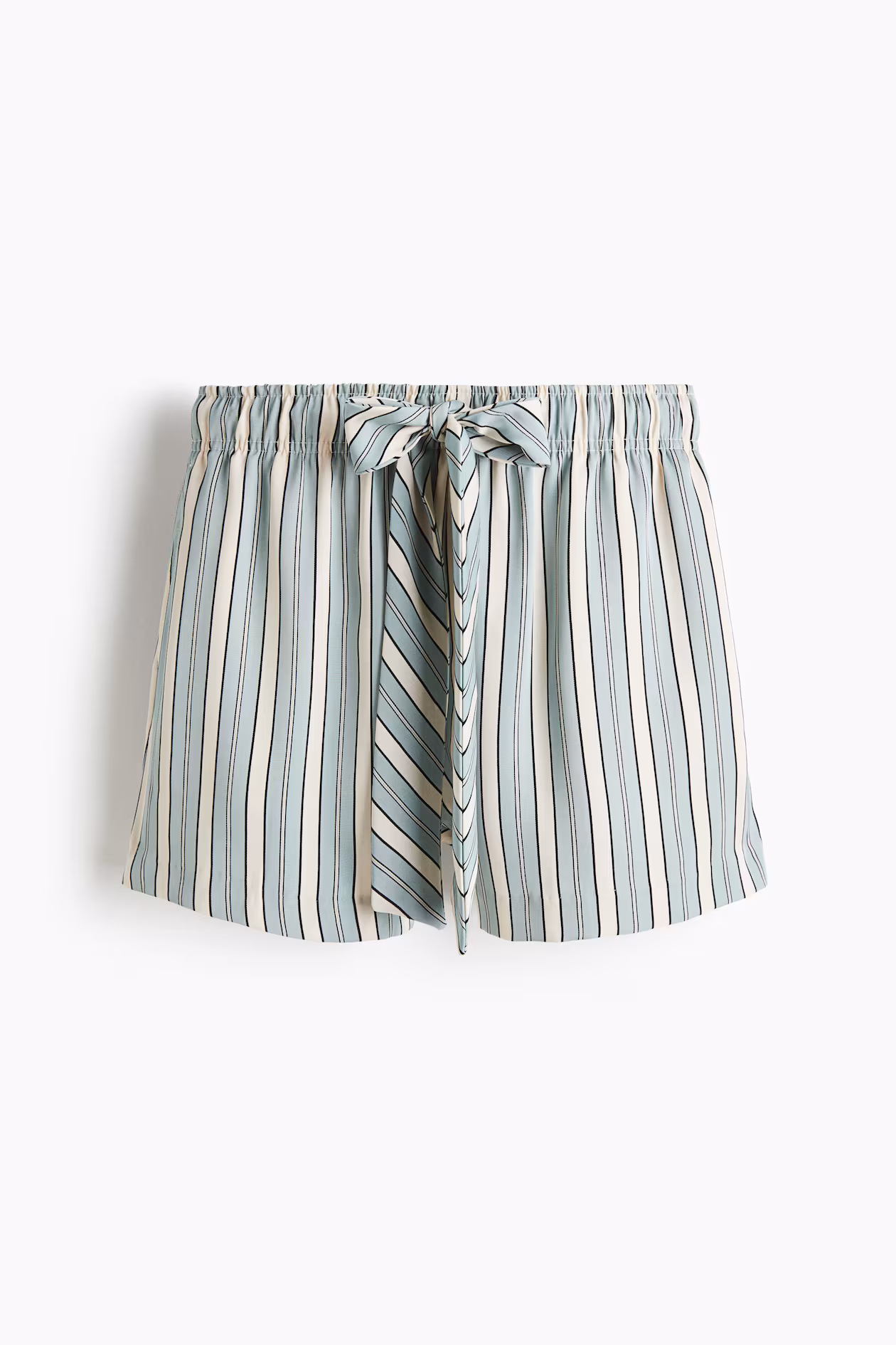 Loose-fit shorts in twill. High waist, waistband with wide drawstring and covered elastic, and discreet side-seam pockets.