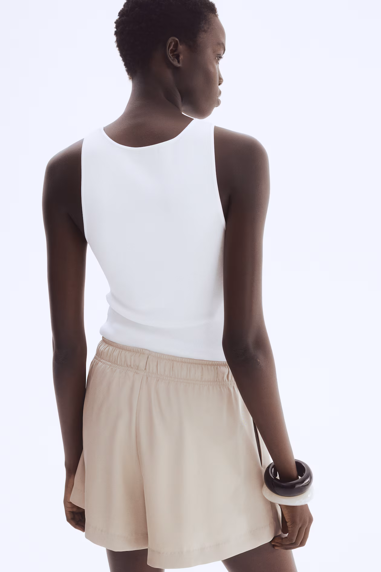 Loose-fit shorts in twill. High waist, waistband with wide drawstring and covered elastic, and discreet side-seam pockets.
