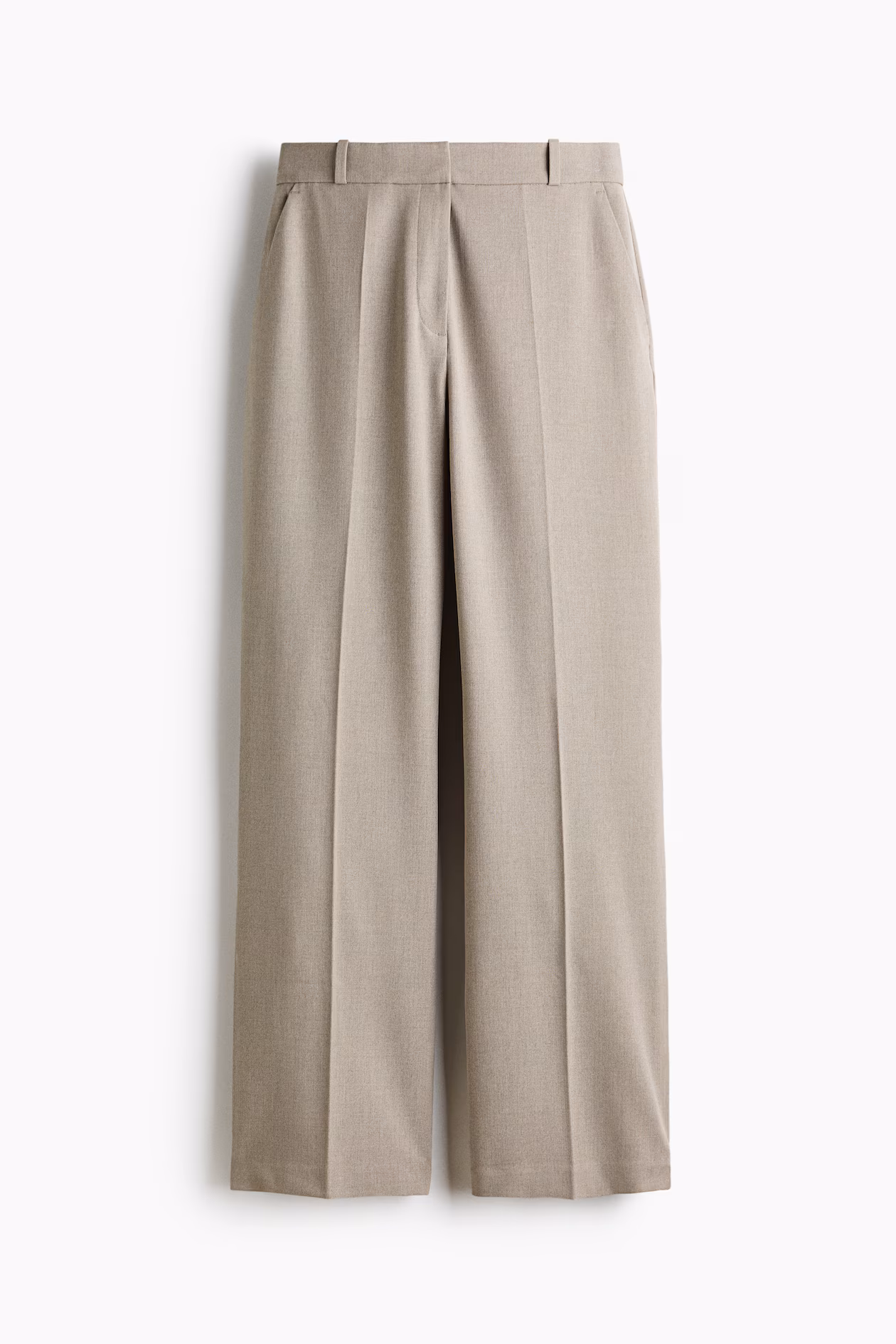 Dress pants in twill with creases at front. Regular waist, zip fly with concealed button and hook-and-bar fastener, diagonal side pockets, and mock welt back pockets. Straight legs.