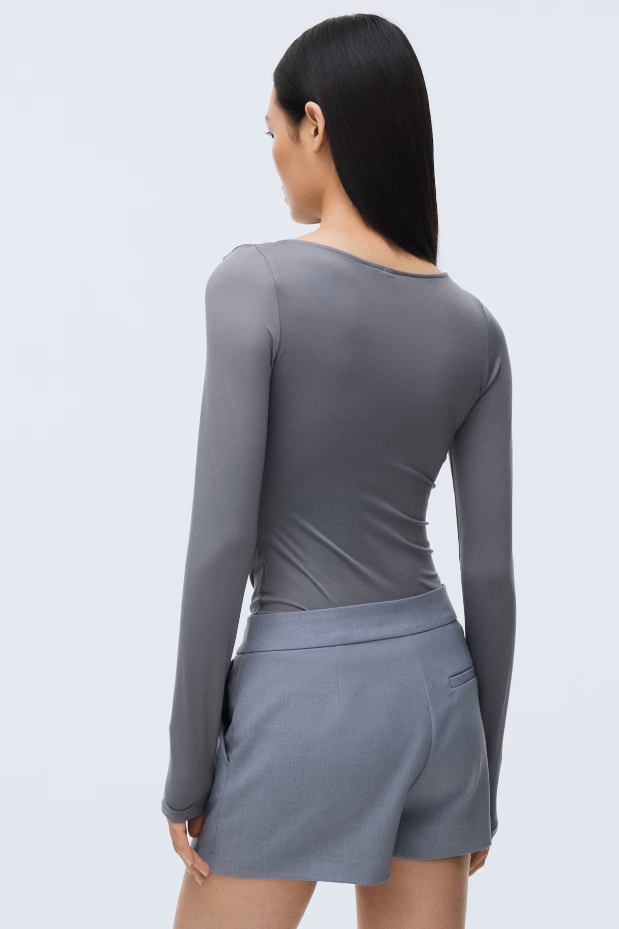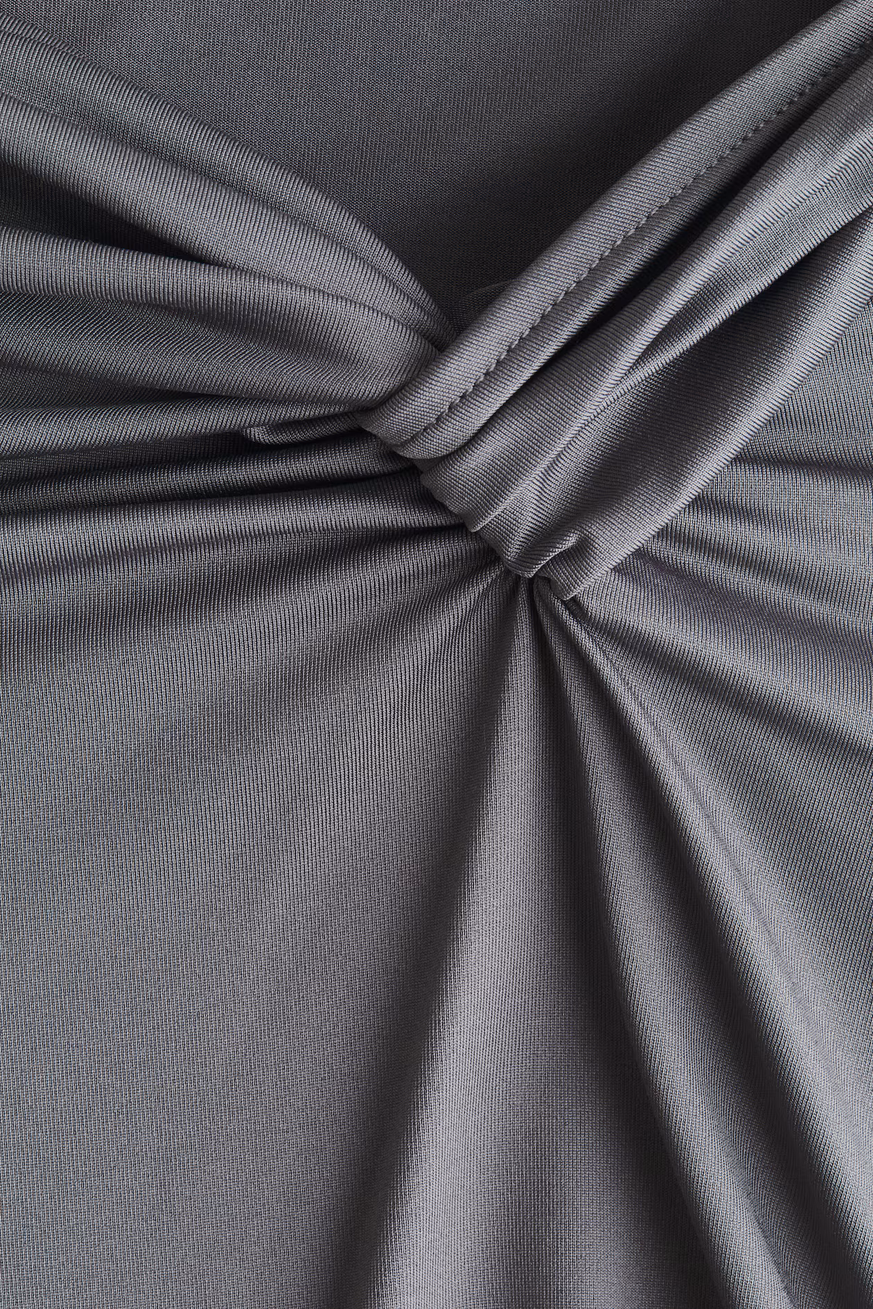 Fitted, long-sleeved top in jersey with an asymmetric neckline. Twisted detail at front neckline and gathers at sides of waist for a draped effect.