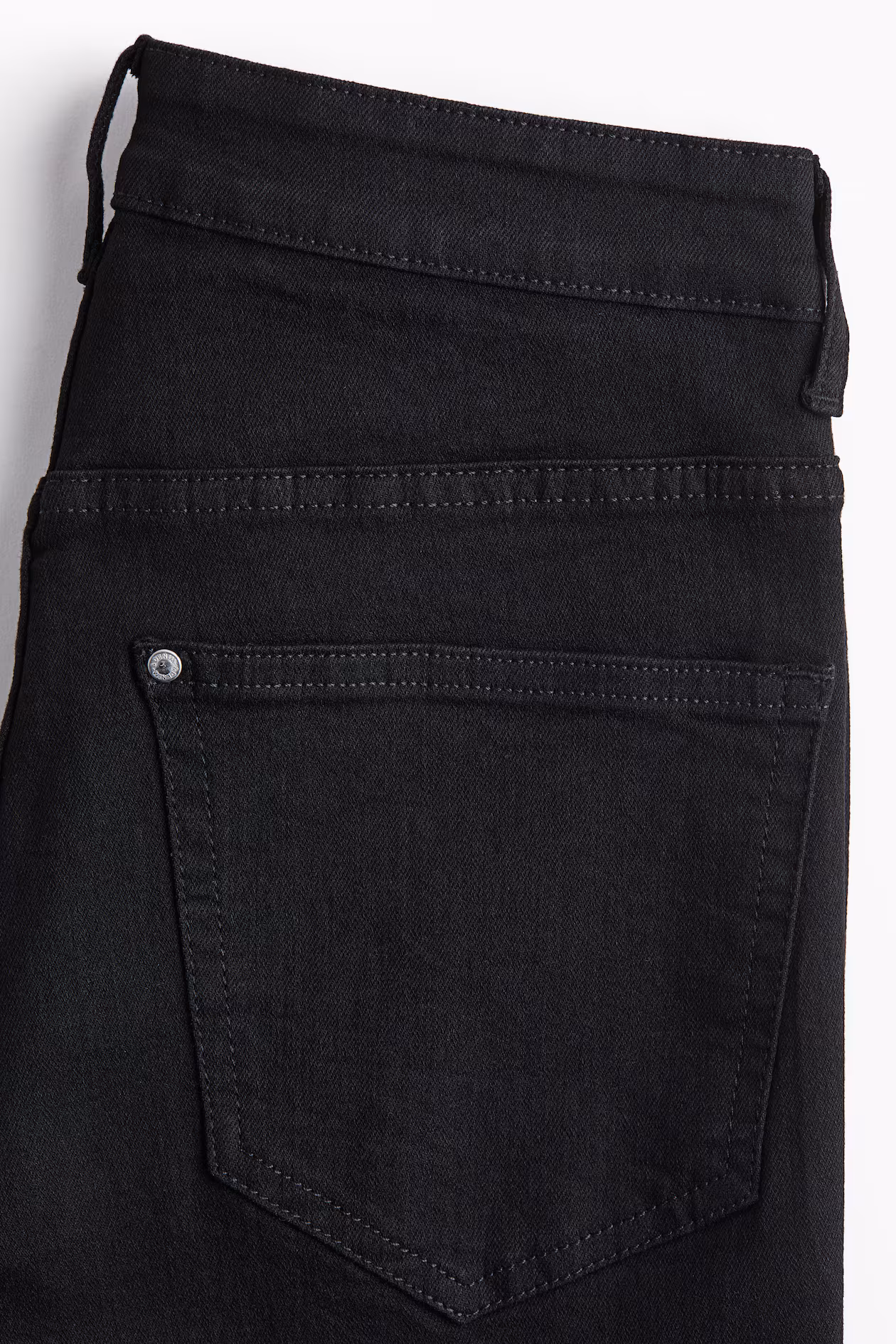 Ankle-length jeggings in denim with good stretch for excellent comfort. Figure-hugging fit showcases your figure. Extra-high waist, zip fly with button, mock front pockets, and regular back pockets. Smooth, seamless, and always in style.