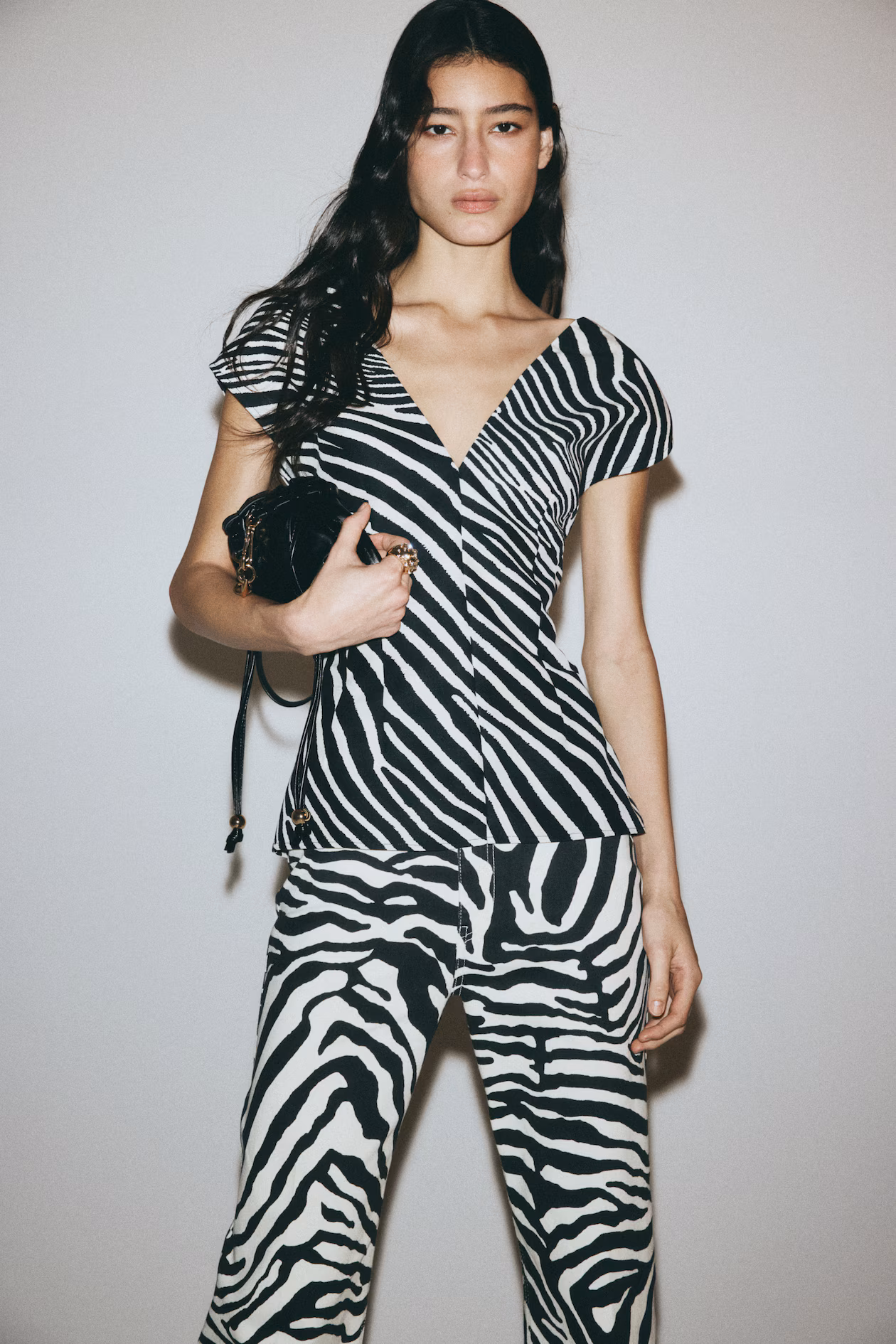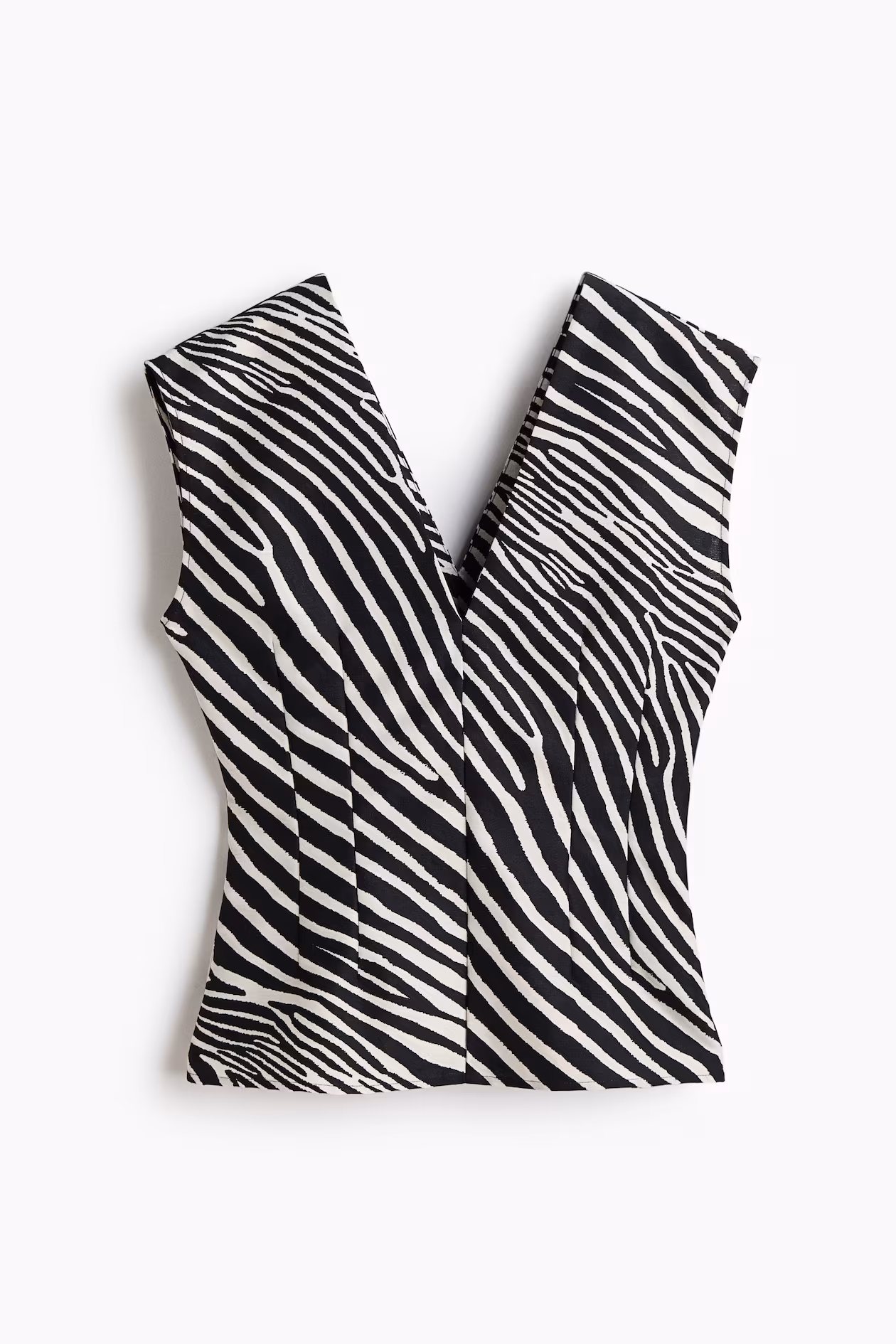 Sleeveless top in woven fabric. Low-cut V-neck at front and back, shaping seams at waist, and a concealed zipper at one side.