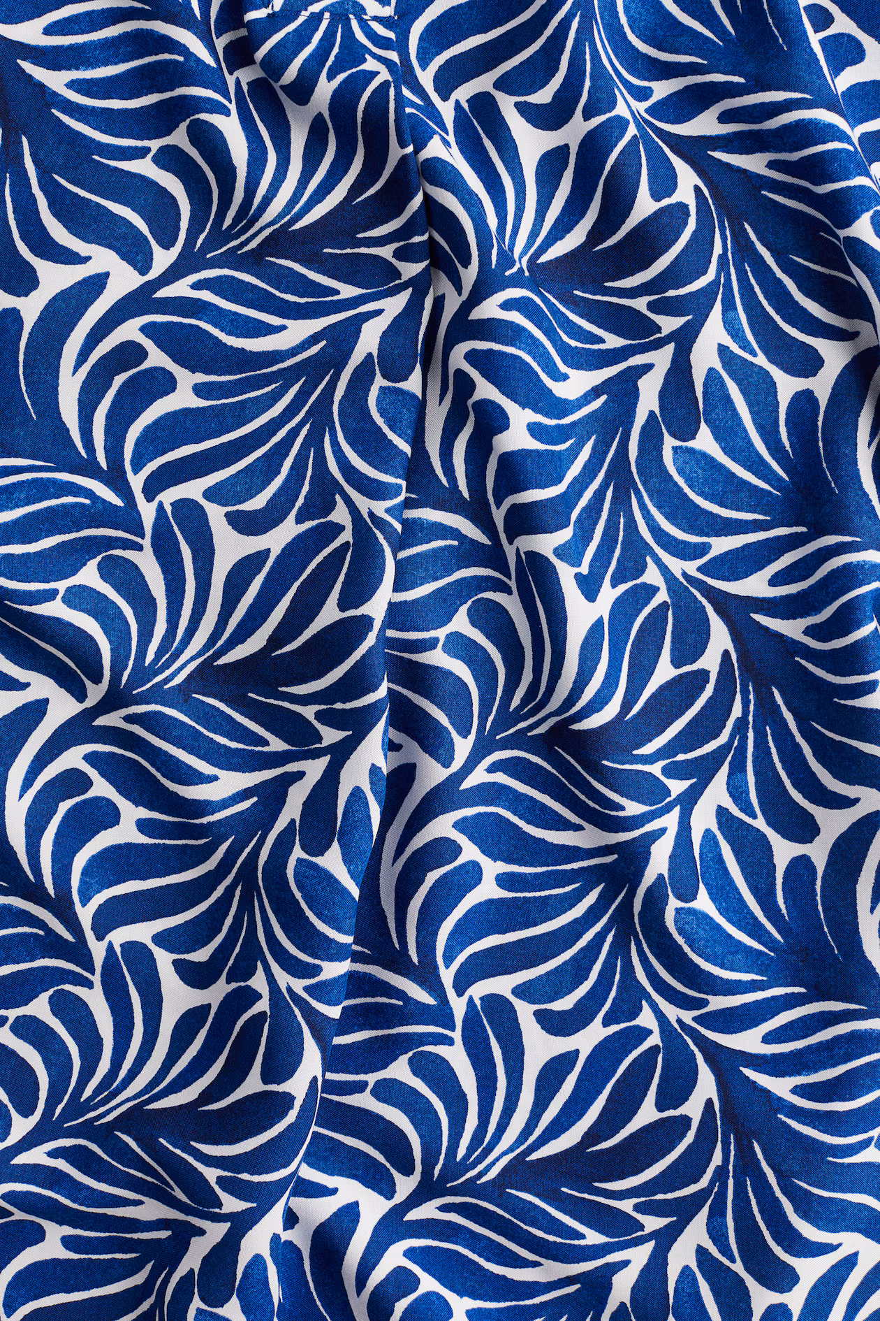Loose-fit, knee-length tunic dress in airy, woven viscose fabric. Band collar, V-shaped opening at front, gently dropped shoulders, and short sleeves. Straight-cut hem with slit at sides and slightly longer hem at back. Unlined.