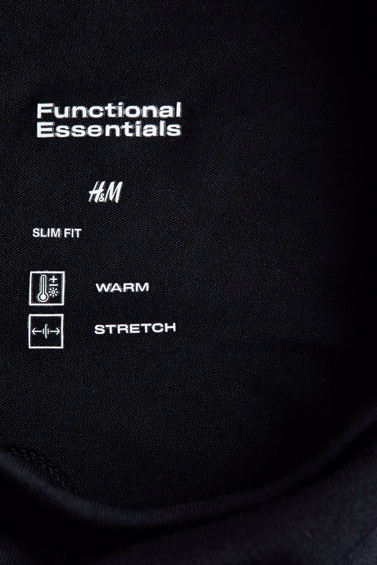 Slim-fit T-shirt in soft, insulating stretch fabric designed to gently retain warmth while ensuring all-day comfort. Mock turtleneck and short sleeves. Functional Essentials is a curated selection of casual wear with a focus on comfort and performance.