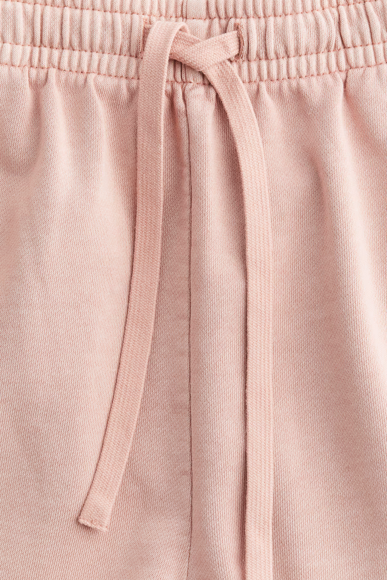 Loose-fit sweatshorts in lightweight cotton with a washed look. Drawstring and smocked elastic at waistband, discreet side pockets, and open back pockets. Slit at hems.