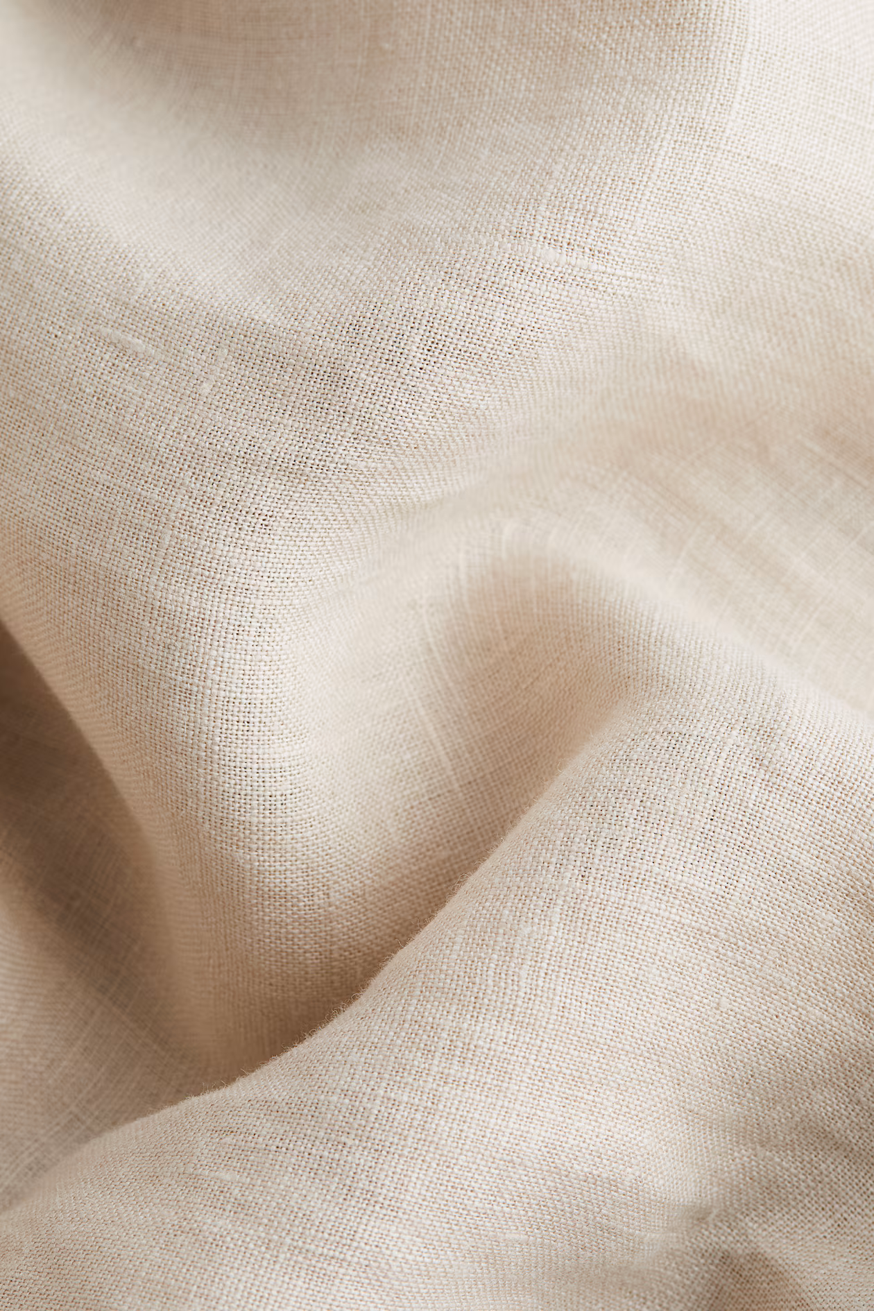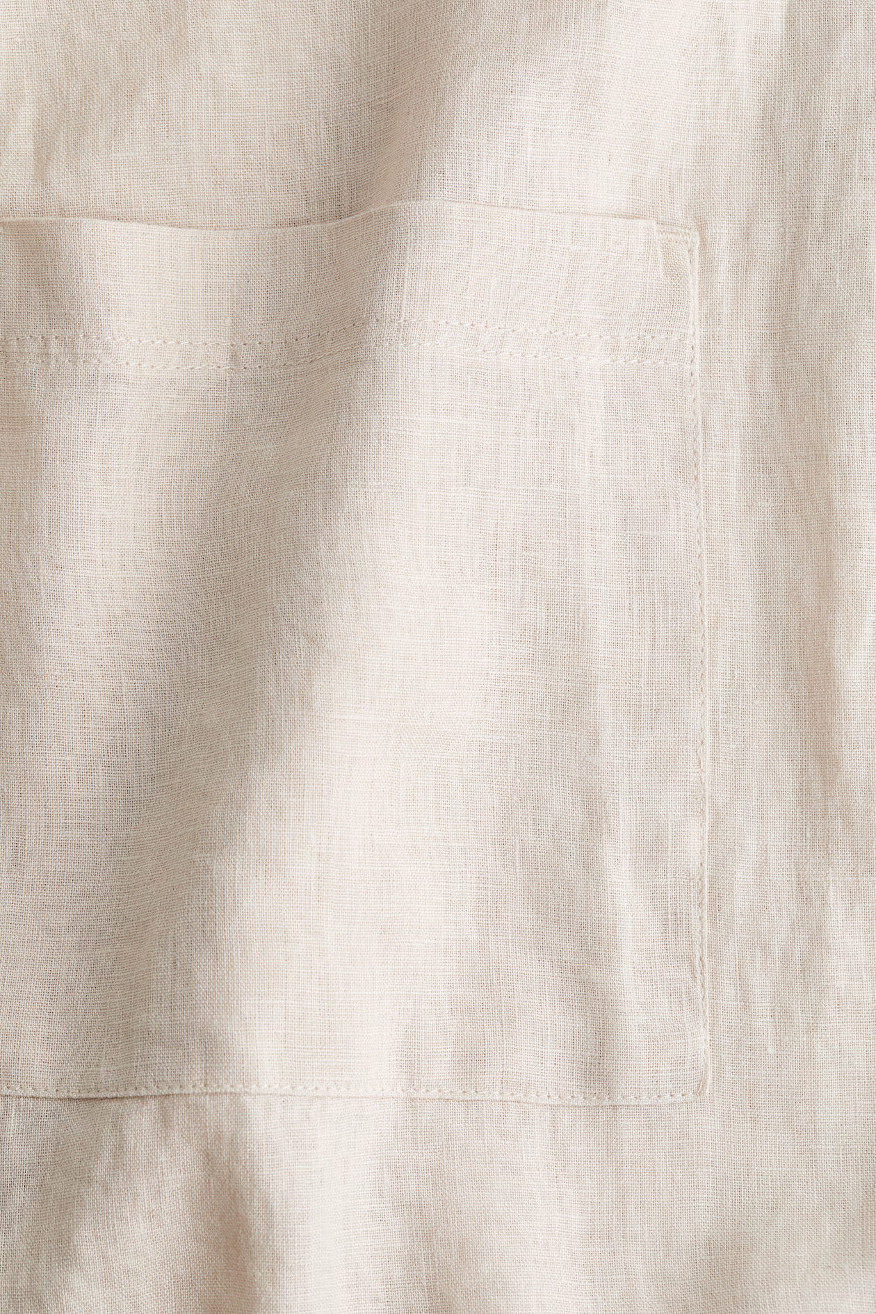 Robe in washed linen with two front pockets and a removable tie belt. Unisex.