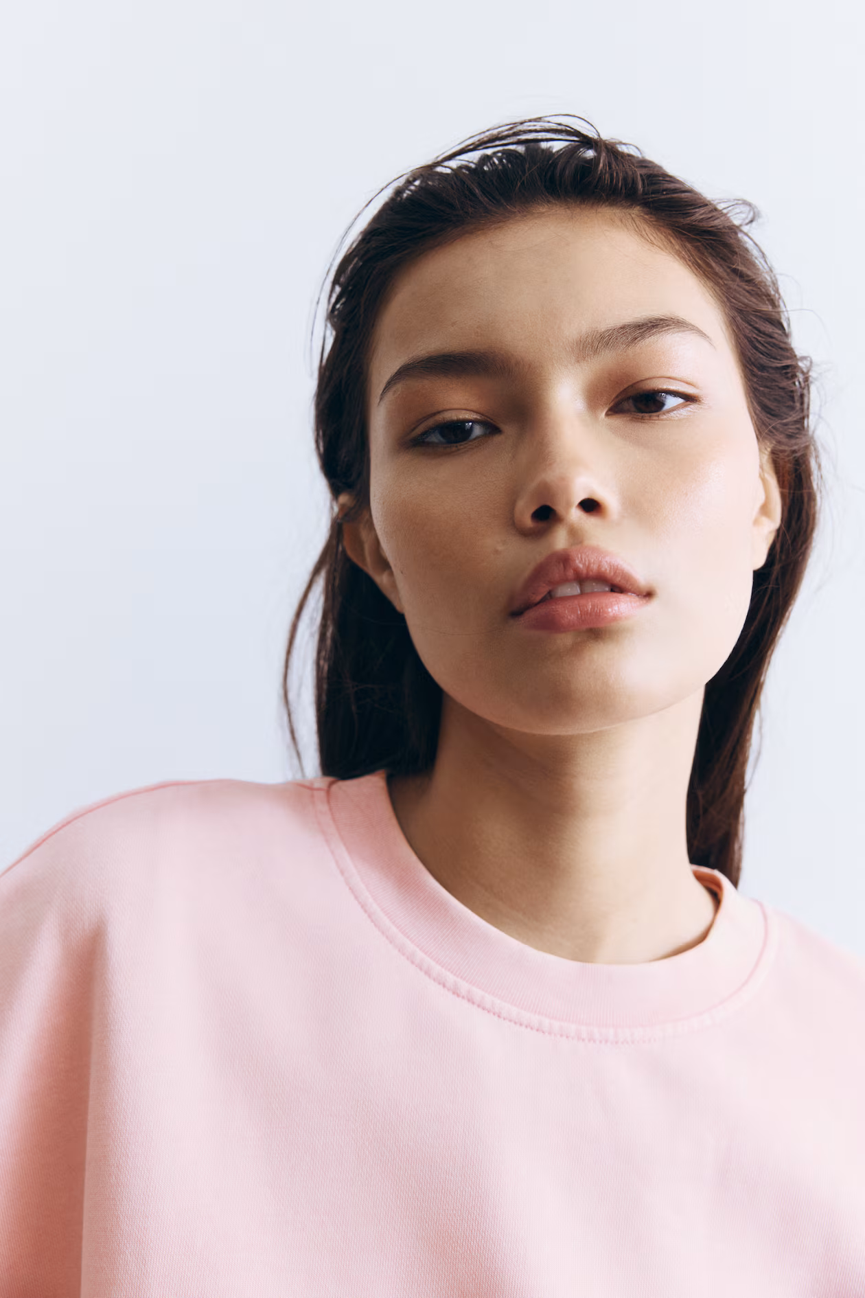 Oversized sweatshirt in washed-look cotton with a visible vertical seam at back. Ribbed round neckline, dropped shoulders, and long sleeves. Straight-cut hem with a slit at sides.