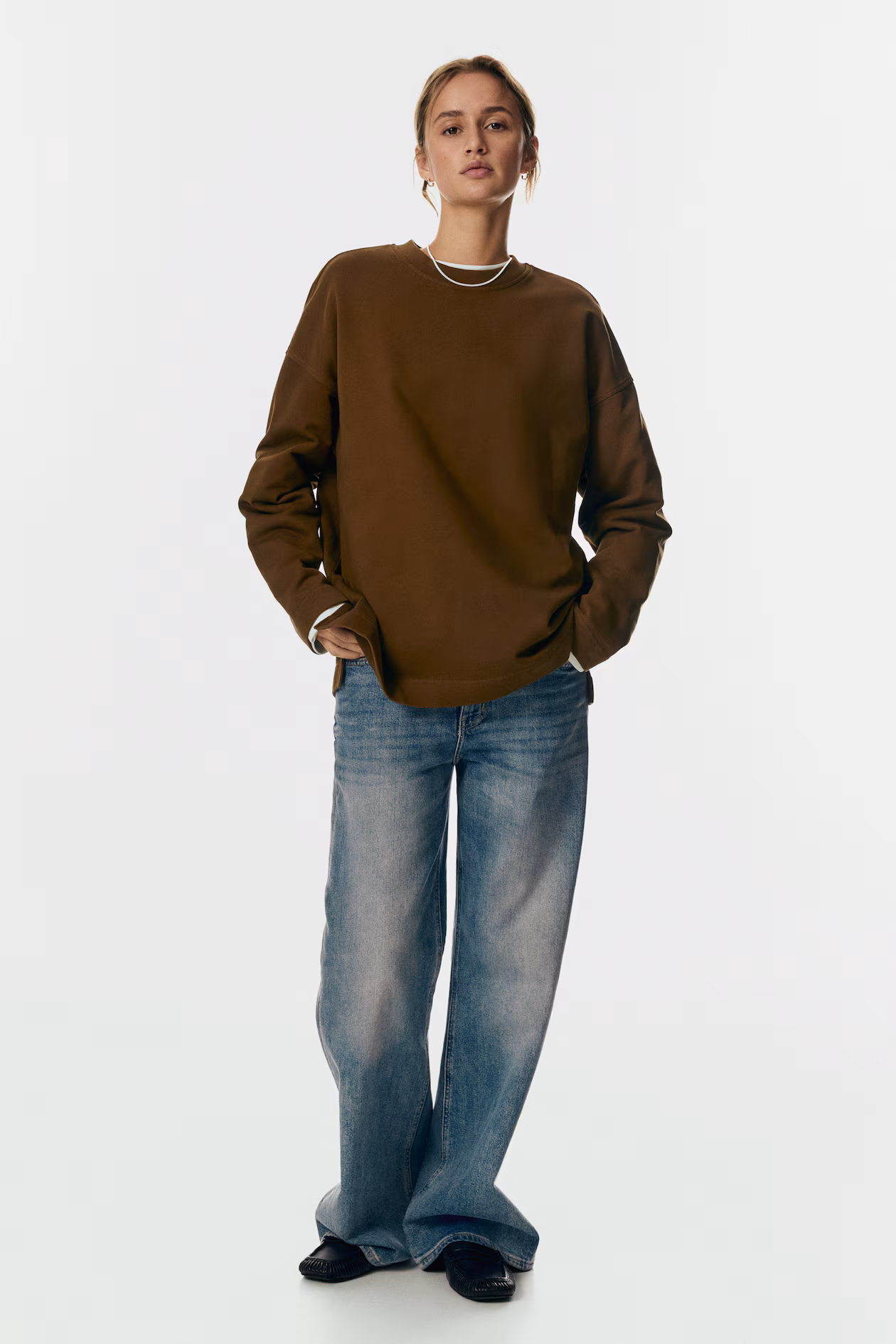 Oversized sweatshirt in washed-look cotton with a visible vertical seam at back. Ribbed round neckline, dropped shoulders, and long sleeves. Straight-cut hem with a slit at sides.