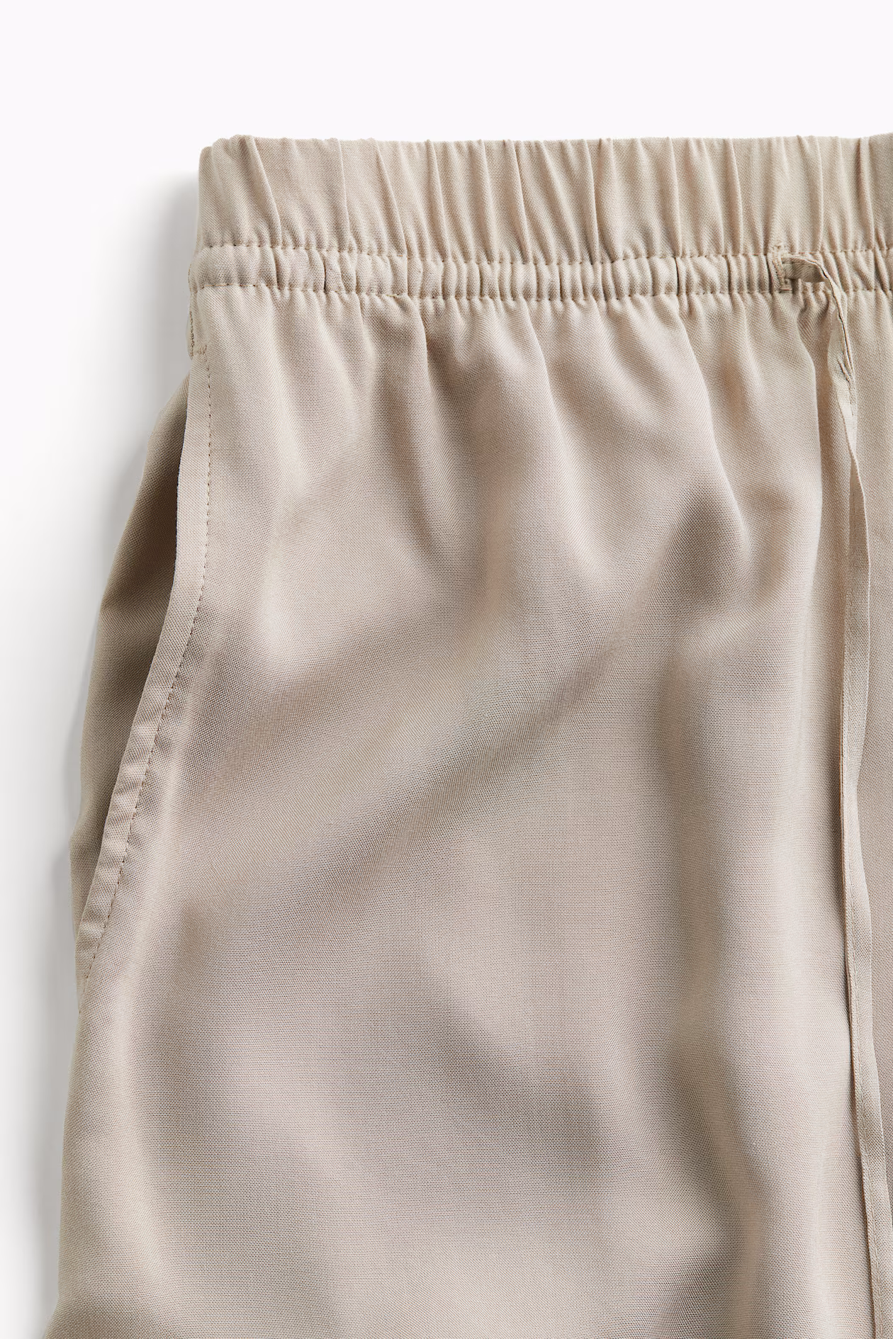 Loose-fit pants in airy, woven viscose fabric. High waist, narrow drawstring and covered elastic at waistband, and discreet side-seam pockets. Straight, wide legs.