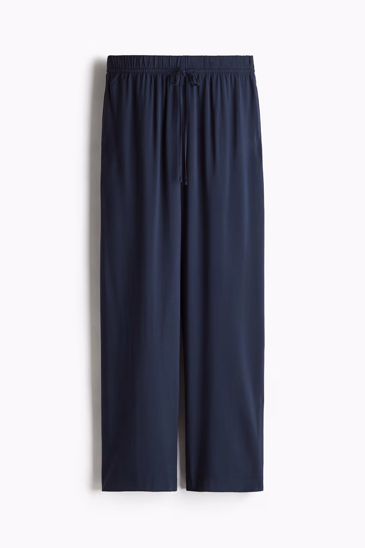 Loose-fit pants in airy, woven viscose fabric. High waist, narrow drawstring and covered elastic at waistband, and discreet side-seam pockets. Straight, wide legs.