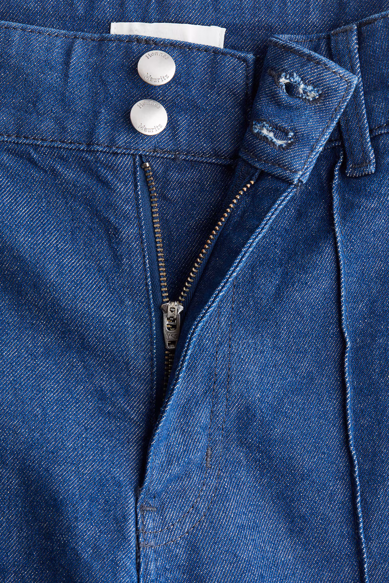 Ankle-length jeans in cotton denim with gentle stretch for good comfort. Regular fit from waist to hip and wide cut from thigh to hem. High waist, zip fly with buttons, patch back pockets, and stitched creases at front. Wide legs. Inspired by the 70s, designed for today.