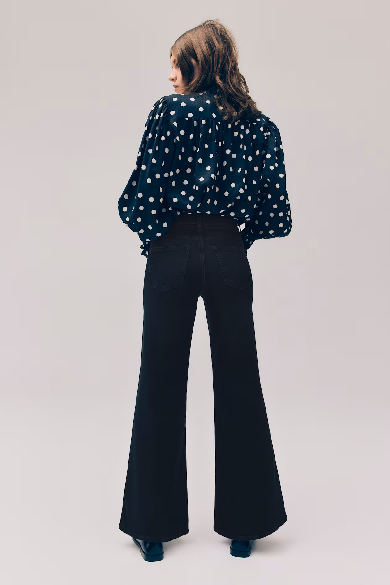 5-pocket jeans in cotton denim with gentle stretch for comfort. Regular fit from waist to hip and wide cut from thigh to hem. High waist and zip fly with button. Wide, regular-length legs, designed to fall at top of foot with little or no stacking. Featuring a wide silhouette that's always flattering.