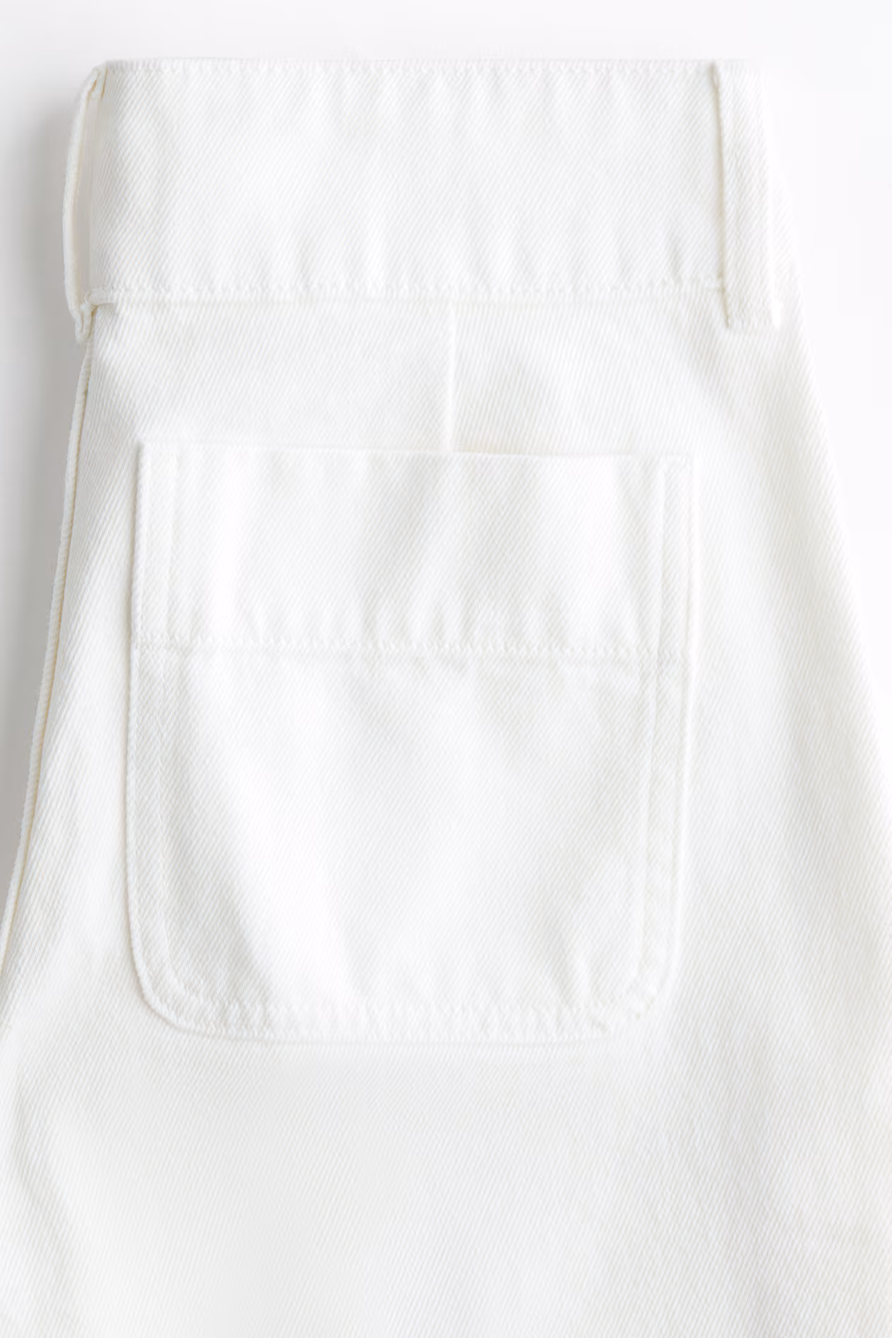 Jeans in rigid cotton denim that feels firm at first, softening and relaxing with wear. Regular fit from waist to hip and wide cut from thigh to hem. High waist and zip fly with buttons. Welt front pockets with braided trim, patch back pockets, and creases at front and back. Wide, regular-length legs, designed to fall at top of foot with little or no stacking. Featuring a wide silhouette that's always flattering.