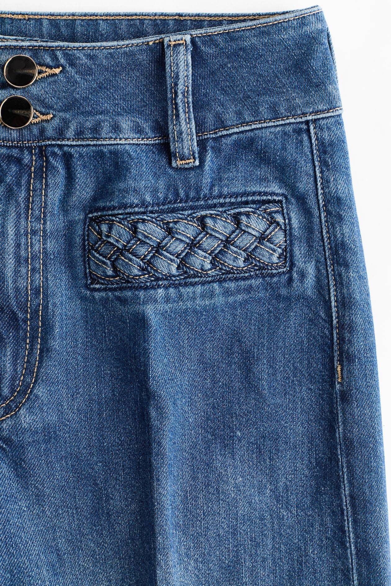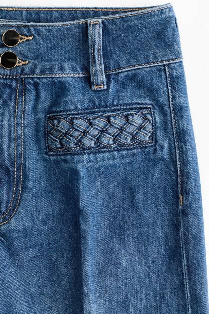 Jeans in rigid cotton denim that feels firm at first, softening and relaxing with wear. Regular fit from waist to hip and wide cut from thigh to hem. High waist and zip fly with buttons. Welt front pockets with braided trim, patch back pockets, and creases at front and back. Wide, regular-length legs, designed to fall at top of foot with little or no stacking. Featuring a wide silhouette that's always flattering.