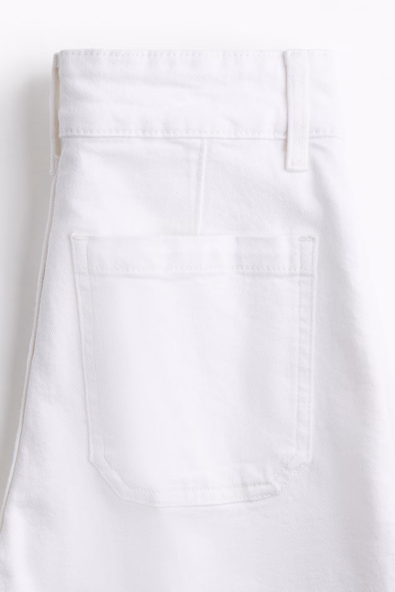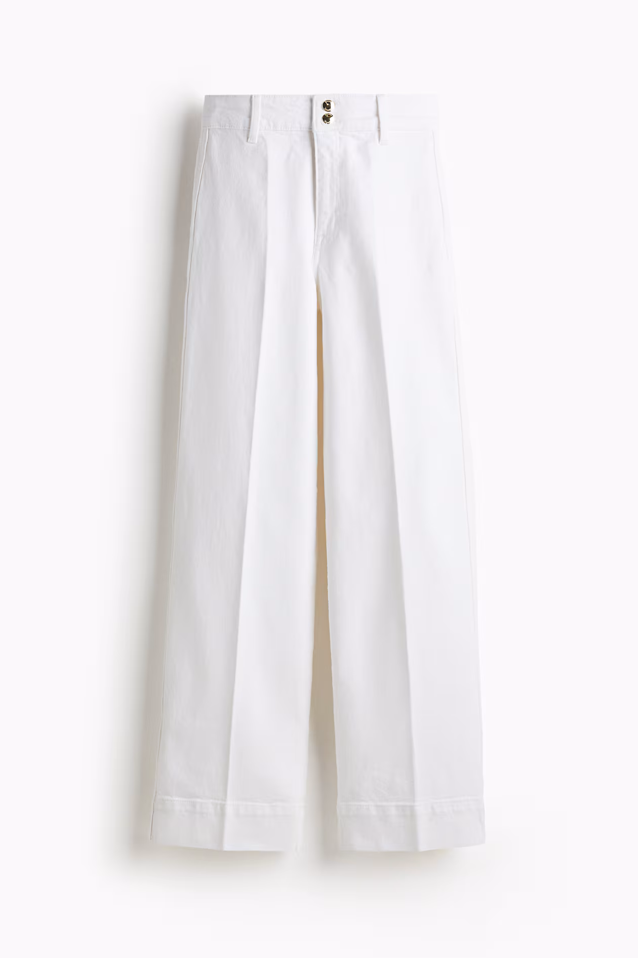 Wide-leg jeans in cotton denim with gentle stretch for good comfort. Regular fit from waist to hip and wide cut from thigh to hem. High waist, zip fly with two buttons, patch back pockets, and creases at front and back. Longer length, designed to fall over foot with a stacking effect. Featuring a wide silhouette that's always flattering.