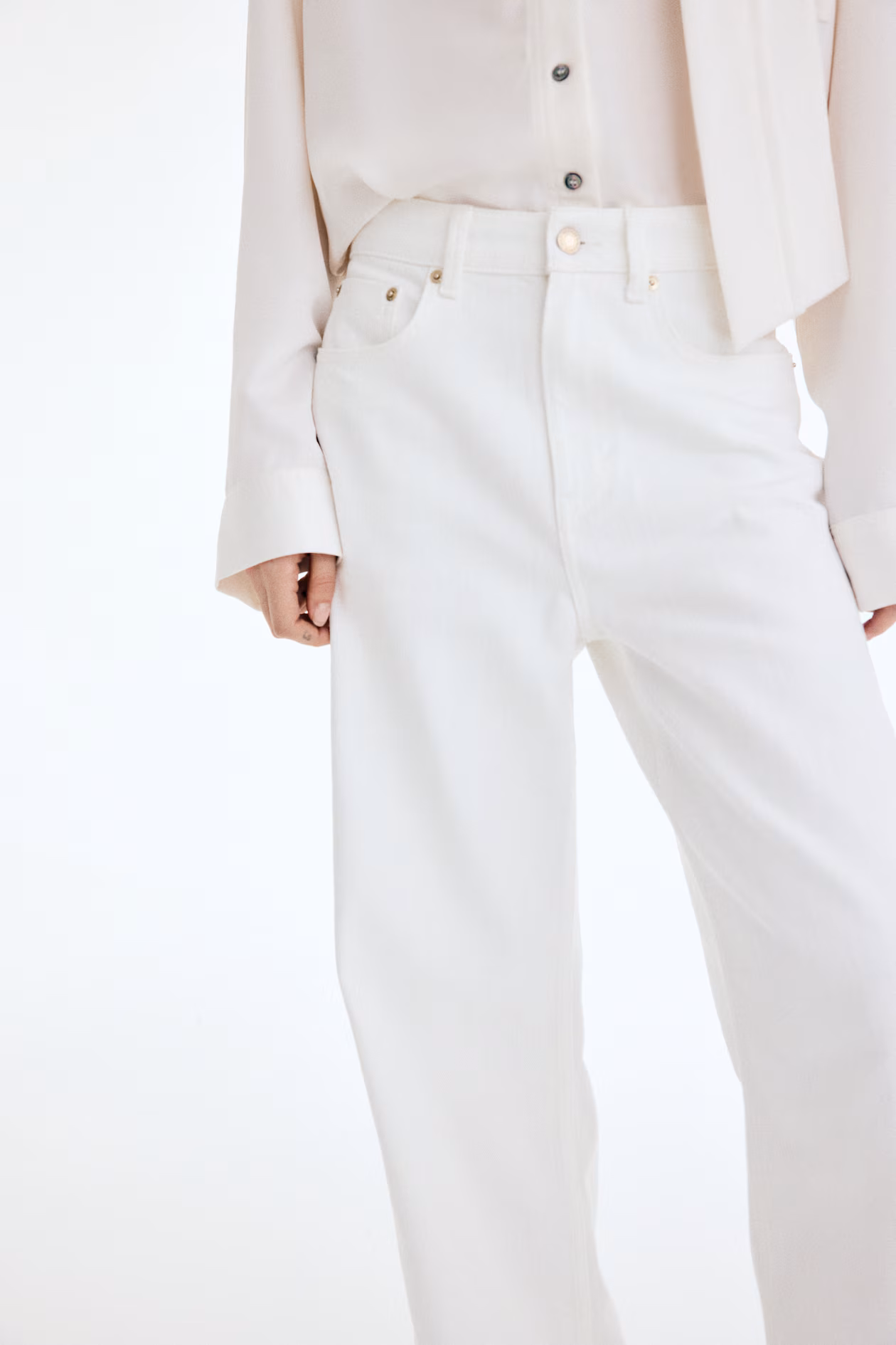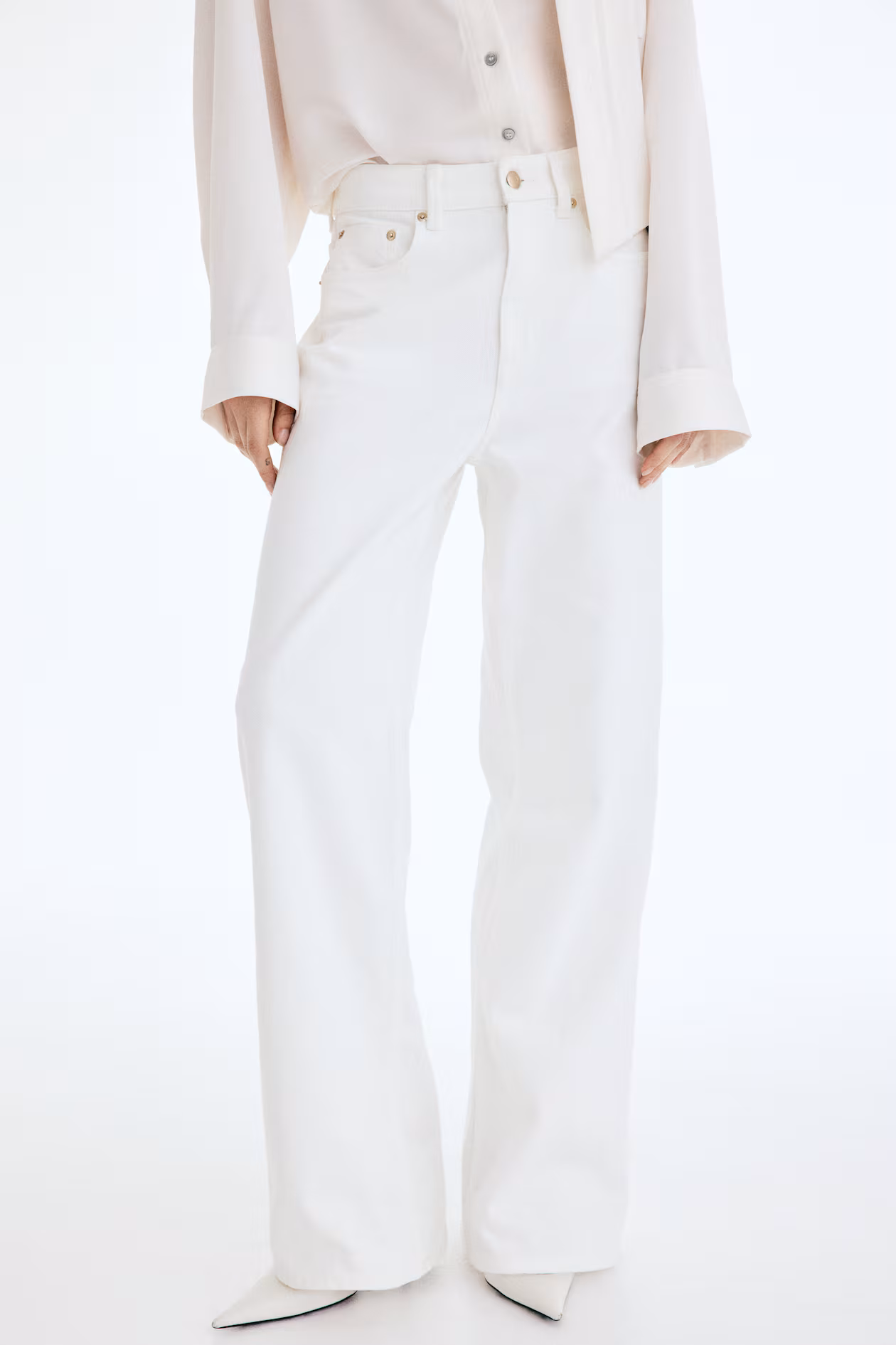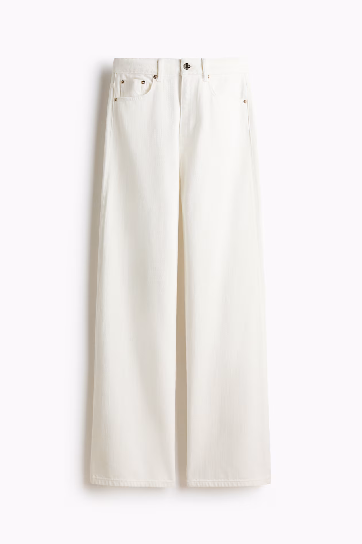 5-pocket jeans in rigid denim that feels firm at first, softening and relaxing with wear. Regular fit from waist to hip and wide cut from thigh to hem. High waist and zip fly with button. Wide, regular length legs, designed to fall at top of foot with little or no stacking. Effortlessly flattering no matter how they're styled.