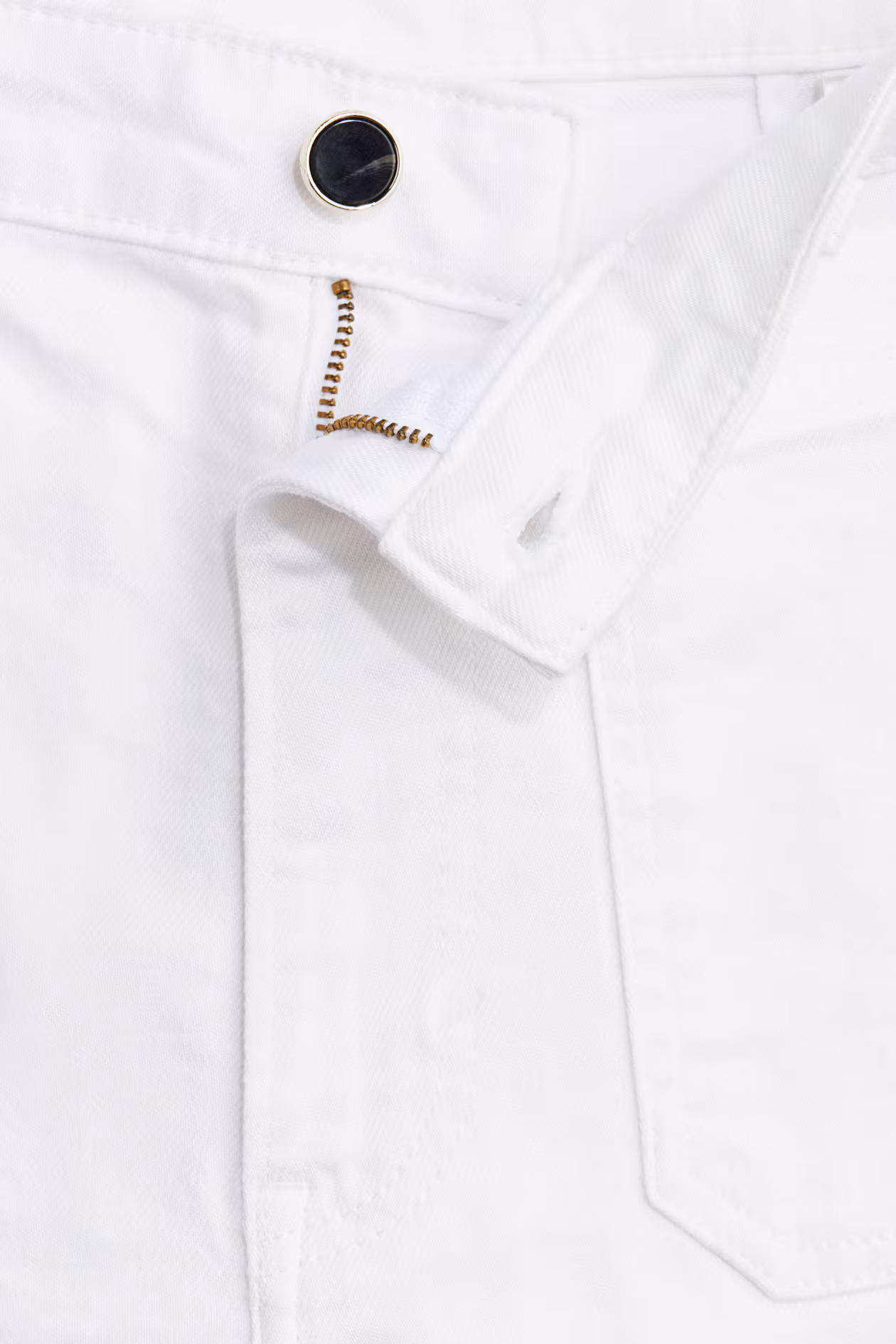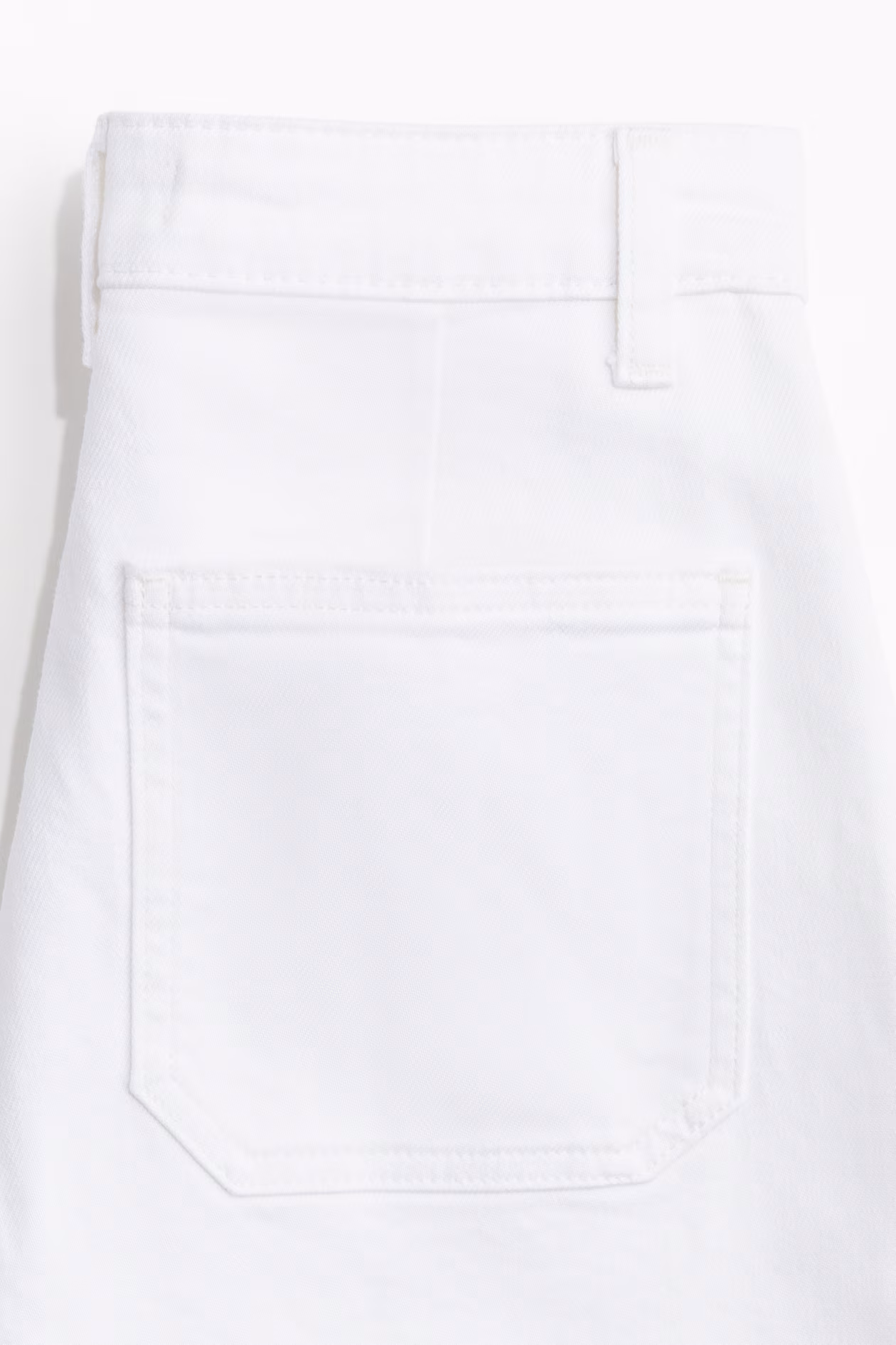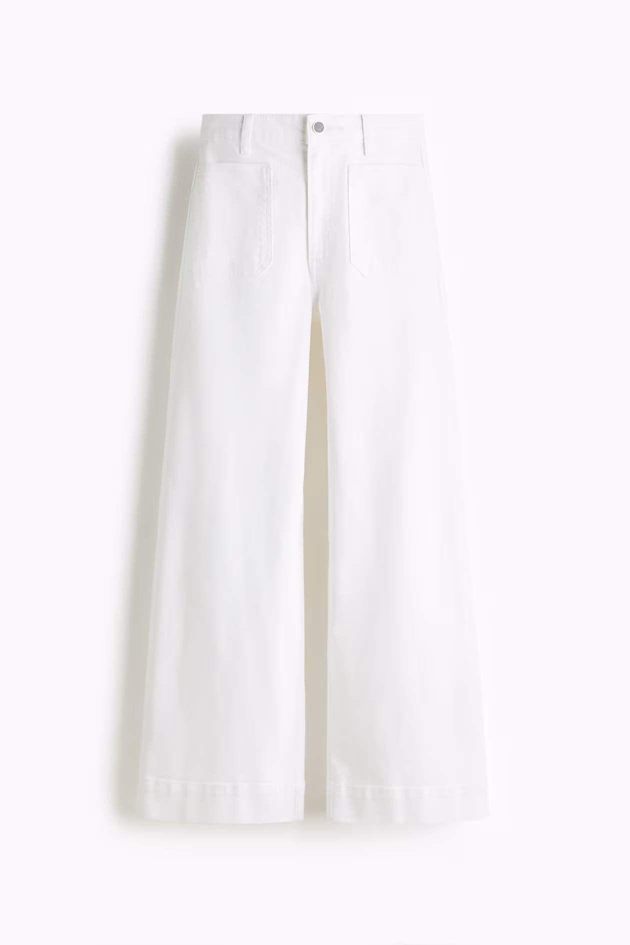 Jeans in cotton denim with gentle stretch for good comfort. Regular fit from waist to hip and wide cut from thigh to hem. High waist, zip fly with button, patch front pockets, and patch back pockets. Wide, regular-length legs, designed to fall at top of foot with little or no stacking. A denim statement that goes the distance.