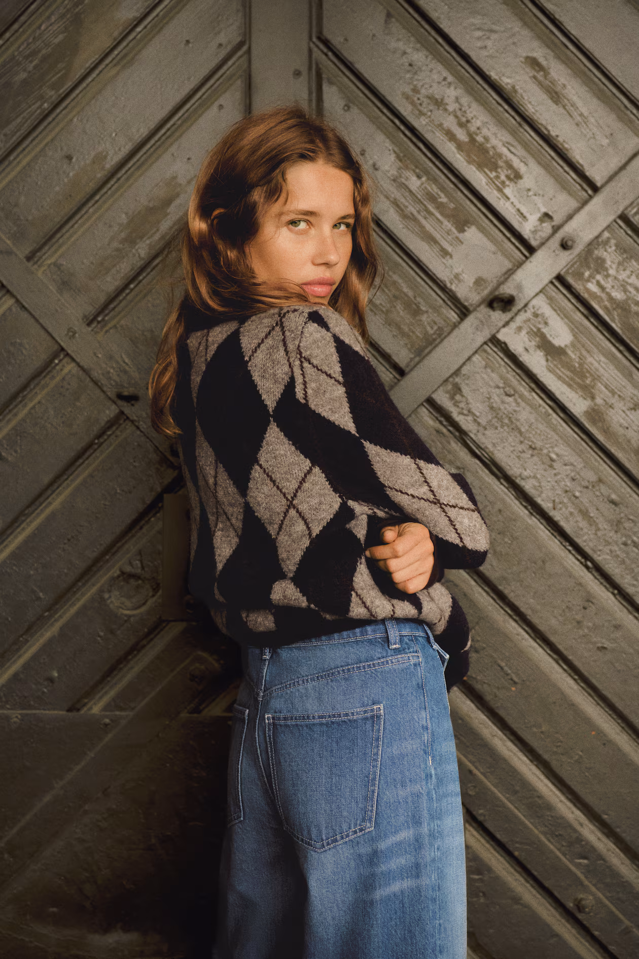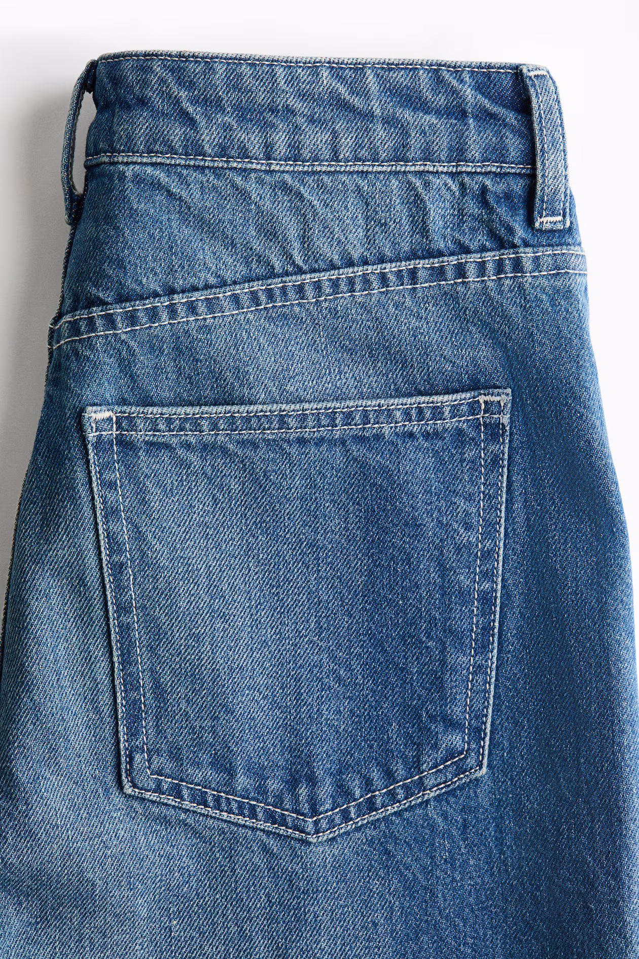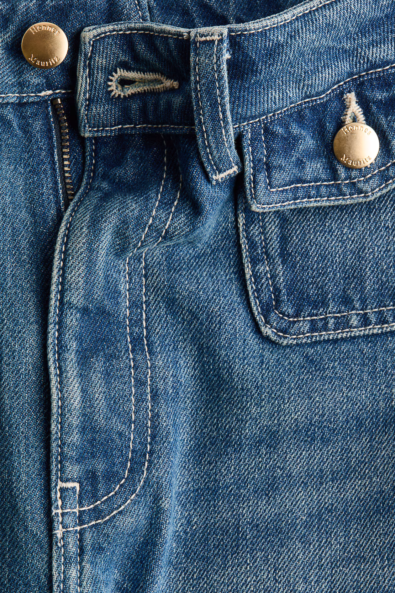Jeans in rigid cotton denim that feels firm at first, softening and relaxing with wear. Regular fit from waist to hip and wide cut from thigh to hem. High waist and zip fly with button. Front pockets with flap and button and open back pockets. Wide, regular-length legs, designed to fall at top of foot with little or no stacking. Inspired by the 70s, designed for today.