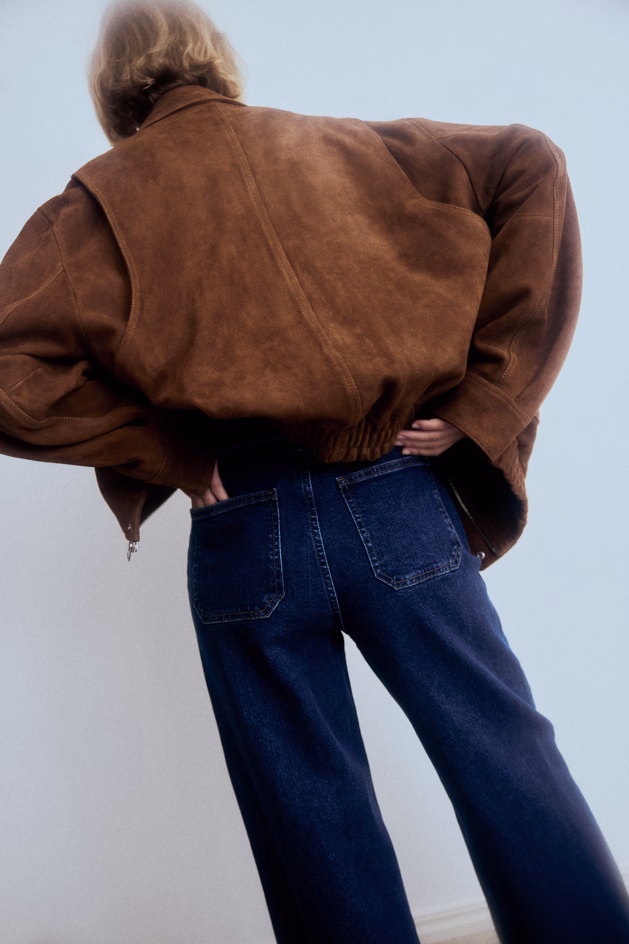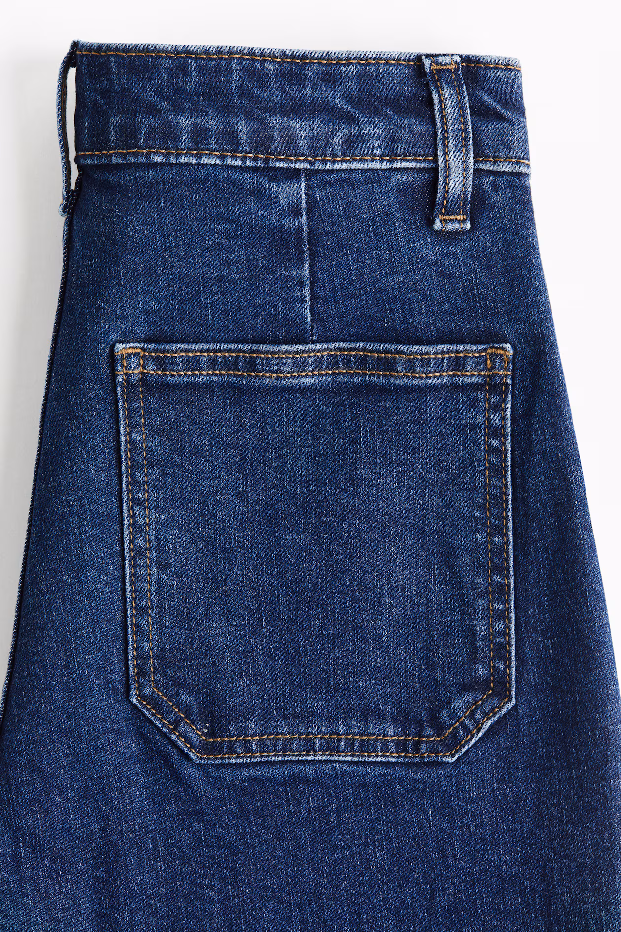 Jeans in cotton denim with gentle stretch for good comfort. Regular fit from waist to hip and wide cut from thigh to hem. High waist, zip fly with button, patch front pockets, and patch back pockets. Wide, regular-length legs, designed to fall at top of foot with little or no stacking. A denim statement that goes the distance.