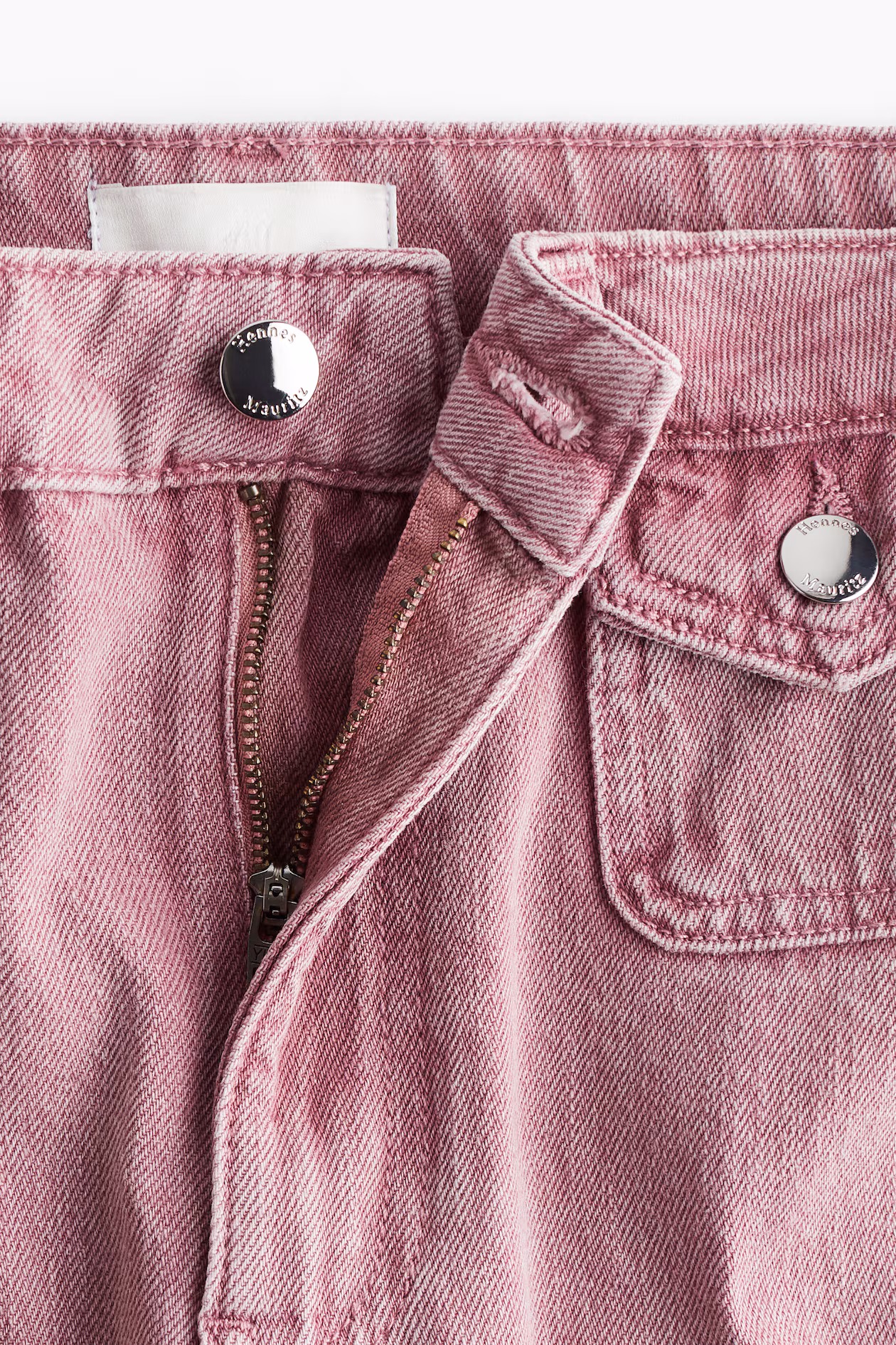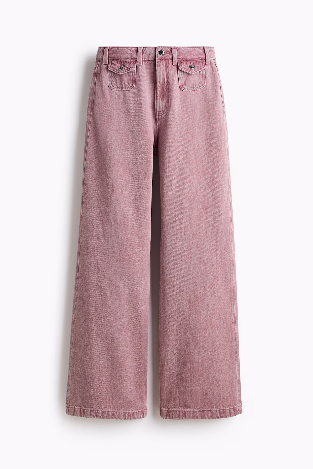 Jeans in rigid cotton denim that feels firm at first, softening and relaxing with wear. Regular fit from waist to hip and wide cut from thigh to hem. High waist and zip fly with button. Front pockets with flap and button and open back pockets. Wide, regular-length legs, designed to fall at top of foot with little or no stacking. Inspired by the 70s, designed for today.