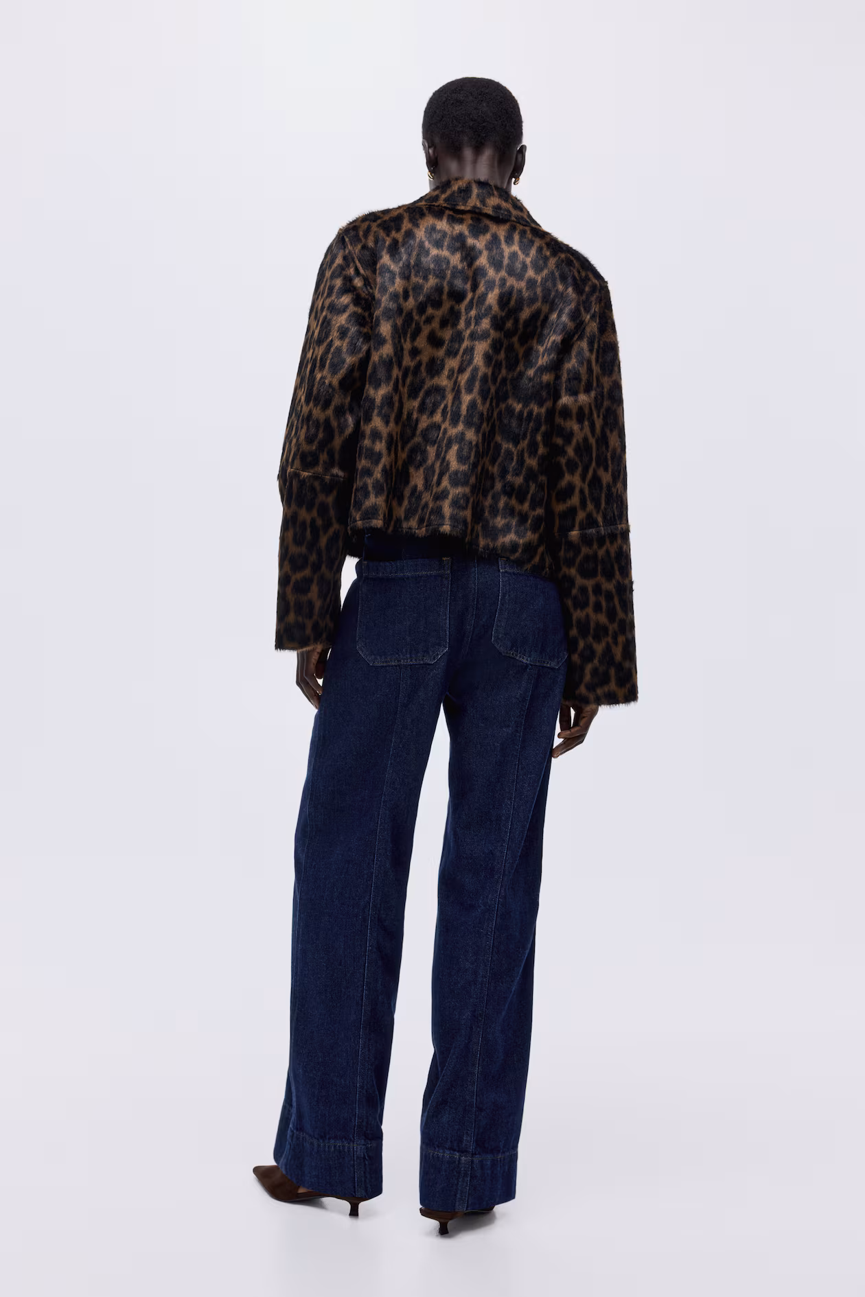 Jeans in rigid cotton denim that feels firm at first, softening and relaxing with wear. Regular fit from waist to hip and wide cut from thigh to hem. High waist, zip fly with buttons, and open back pockets. Visible, vertical seams at front and back. Wide, regular-length legs, designed to fall at top of foot with little or no stacking. Effortlessly flattering no matter how they're styled.