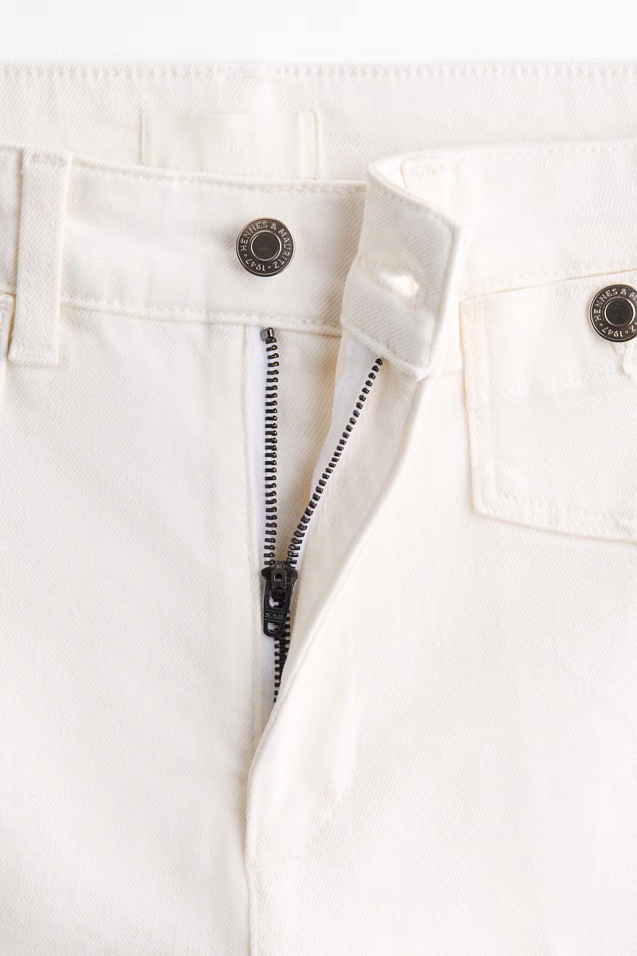 Ankle-length jeans in cotton denim with gentle stretch for good comfort. Slim fit from waist to hip and wide cut from thigh to hem. High waist, zip fly with button, and patch front pockets with button. Wide legs with creases at front and back.