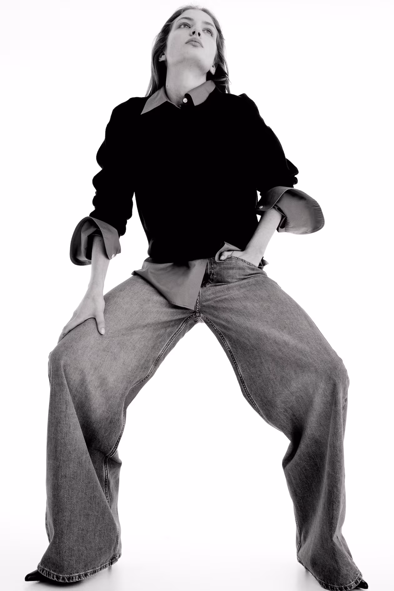 5-pocket, wide-leg jeans in rigid denim made from a cotton and lyocell blend that feels firm at first, softening and relaxing with wear. Regular fit from waist to hip and wide cut from thigh to hem. High waist and zip fly with button. Wide, regular-length legs, designed to fall at top of foot with little or no stacking.