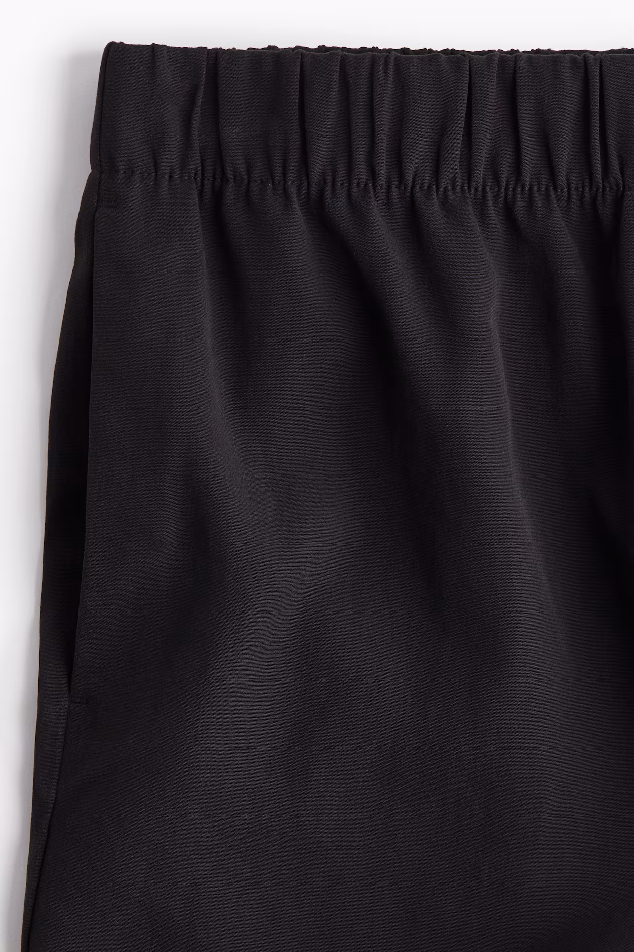 Loose-fit culottes in woven fabric. High waist, elasticized waistband, mock fly, and discreet side pockets. Wide, 3/4-length legs.