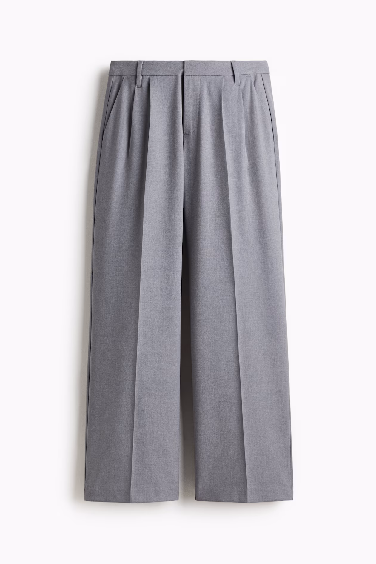 Loose-fit pants in woven fabric with pleats at front. Zip fly with concealed button and hook-and-bar fastener. Diagonal side pockets, mock welt back pockets, and wide legs with creases at front and back.