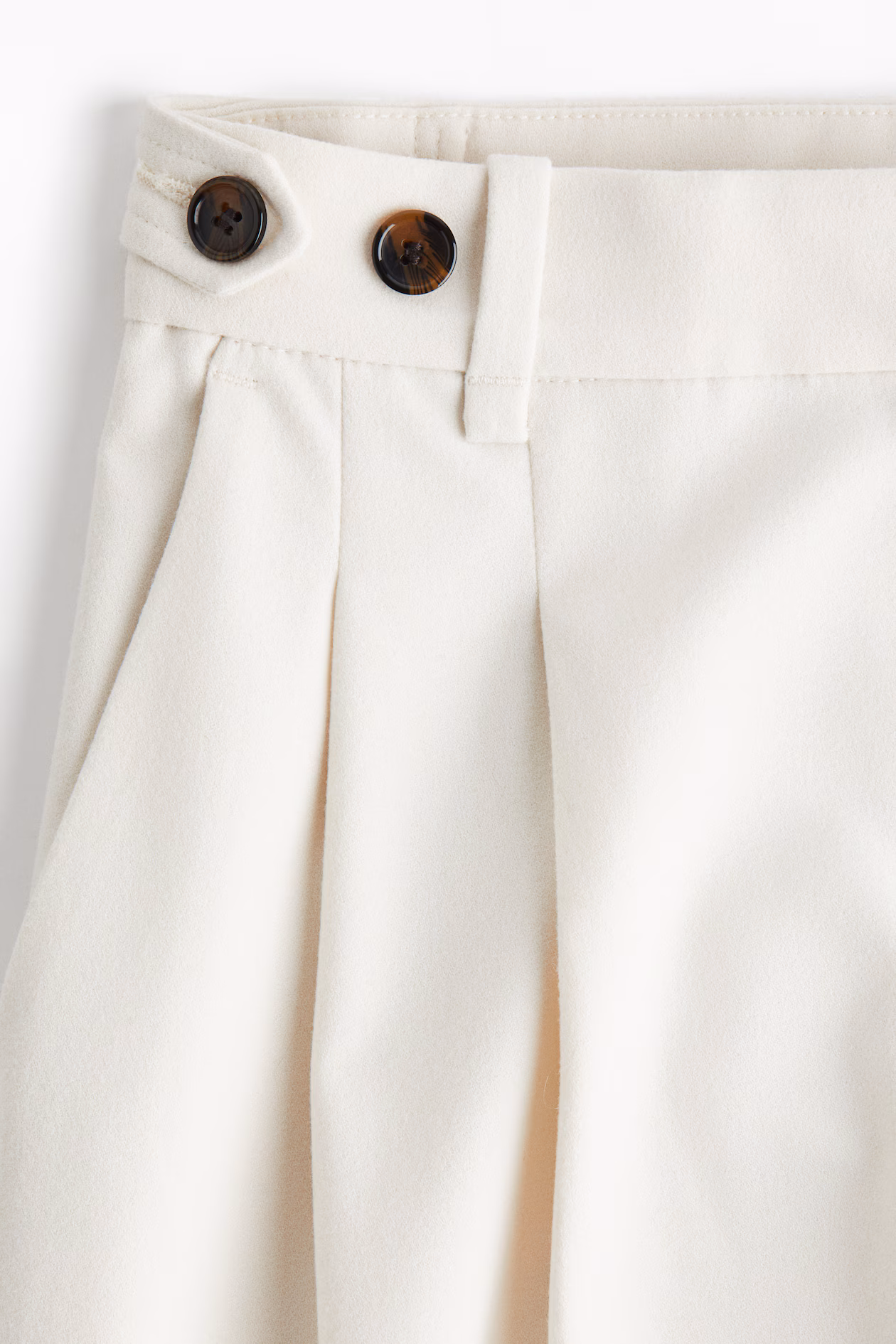 Loose-fit dress pants in woven fabric with pleats at top. Regular waist, adjustable tab at sides with button, and zip fly with hook-and-bar fastener. Diagonal side pockets, mock welt back pockets, and wide legs with creases at front and back.