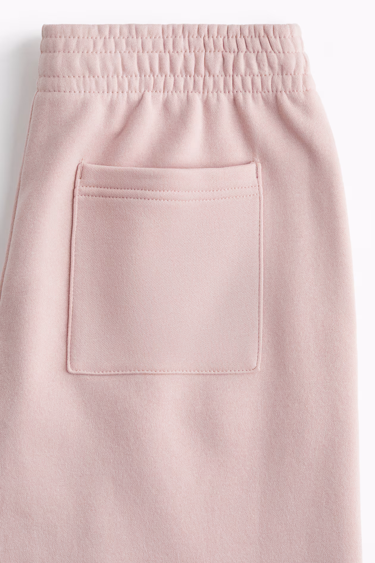 Loose-fit sweatpant joggers with a soft, brushed inside. High waist, concealed drawstring and smocked elastic at waistband, and wide legs. Discreet side pockets and an open back pocket.