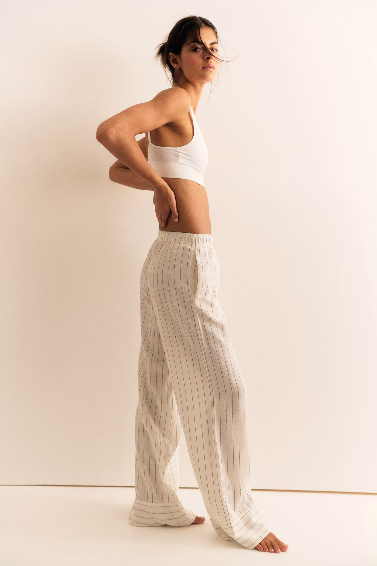 Relaxed-fit pants in a woven linen and viscose blend. Elasticized waistband with drawstring, discreet side pockets, and wide legs.