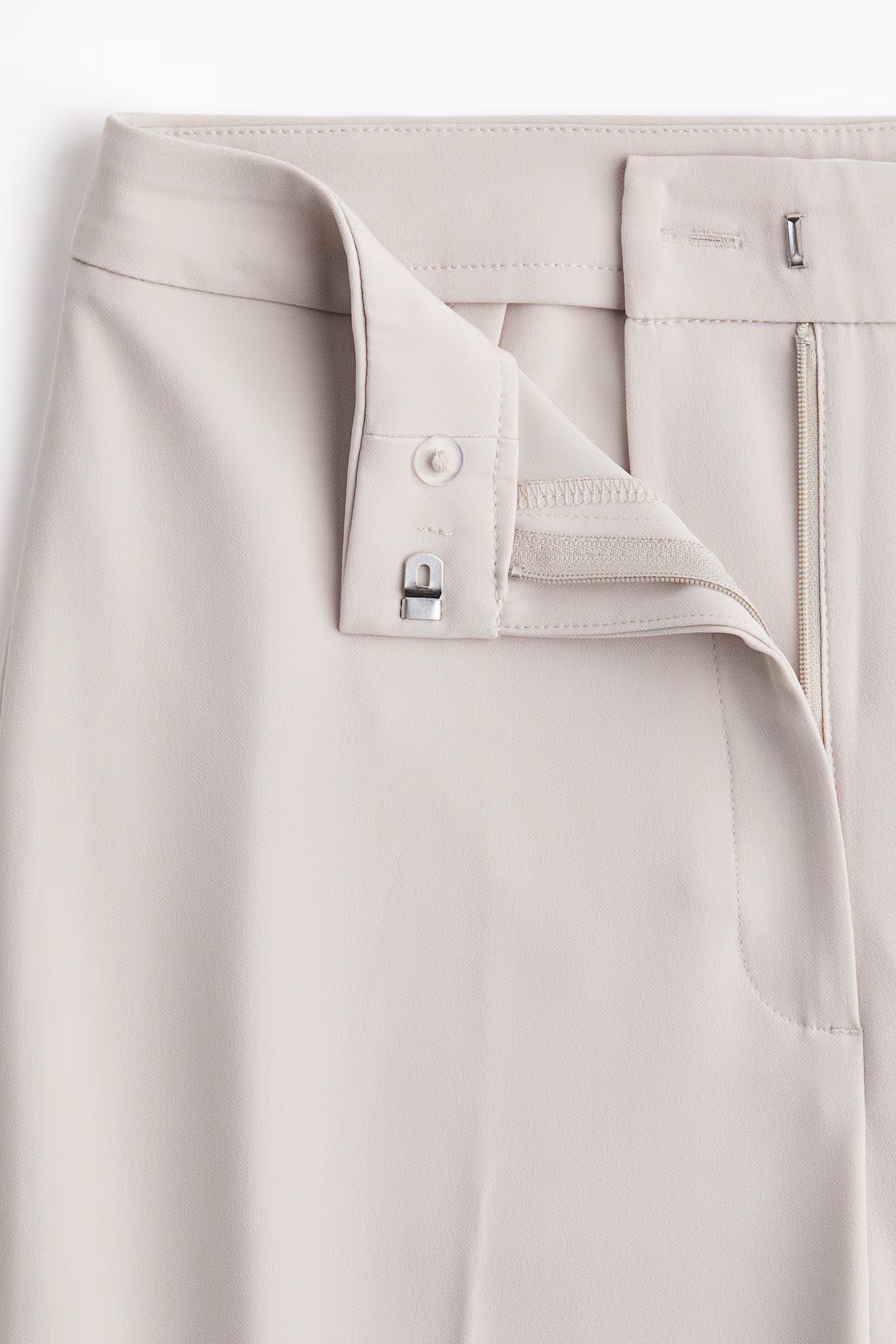 Pants in woven fabric. High waist and zip fly with concealed hook-and-eye fastener. Straight, wide legs with creases.