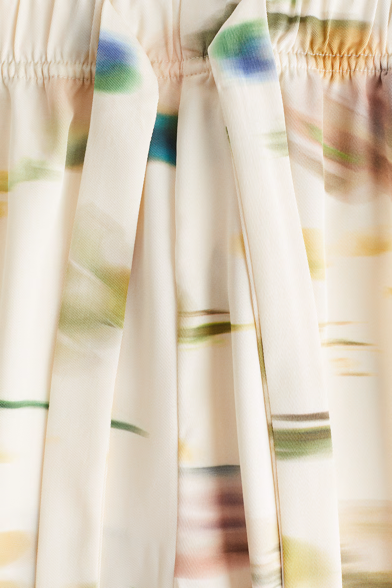 Loose-fit pants in twill. High waist, wide drawstring and covered elastic at waistband, and discreet side pockets. Wide legs.