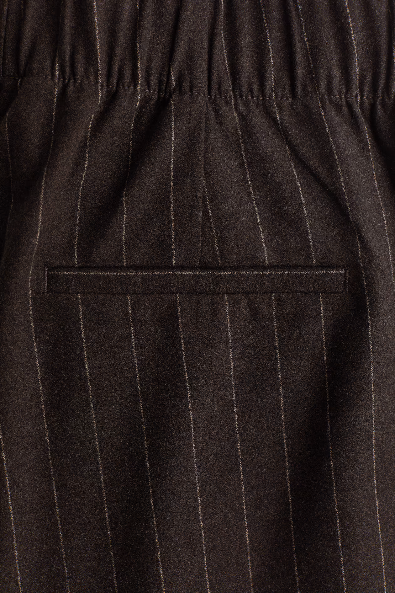 Loose-fit pants in woven fabric with pleats at front. Elasticized waistband, diagonal side pockets, and a mock welt back pocket. Wide legs.