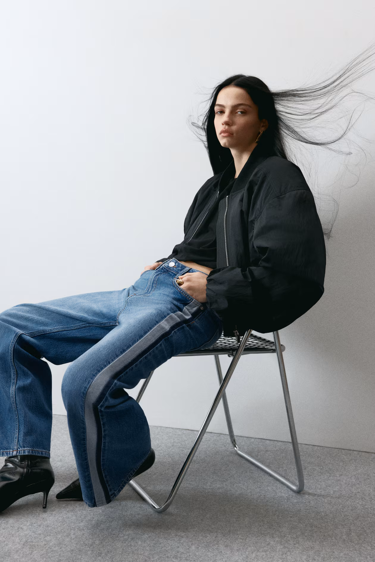 5-pocket jeans in rigid denim that feels firm at first, softening and relaxing with wear. Regular fit from waist to hip and wide cut from thigh to hem. Regular waist, zip fly with button, and contrasting side stripes. Wide, regular length legs, designed to fall at top of foot with little or no stacking. Effortlessly flattering no matter how they're styled.