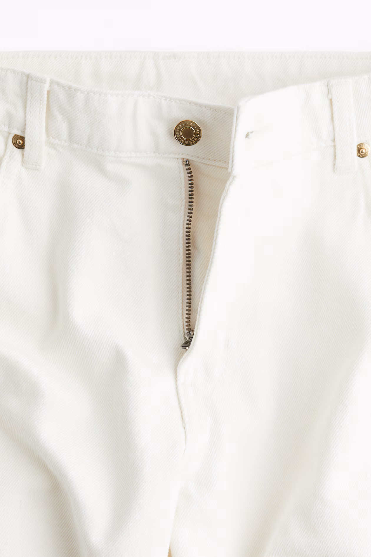 5-pocket jeans in rigid cotton denim that feels firm at first, softening and relaxing with wear. Regular fit from waist to hip and wide cut from thigh to hem. Regular waist and zip fly with button. Wide, longer legs, designed to fall over foot with a stacking effect. The wide-leg jean is a wardrobe essential.