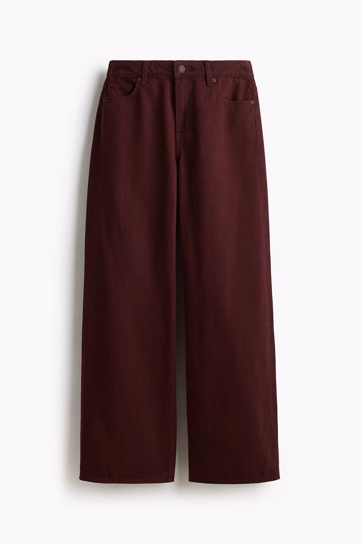 5-pocket jeans in rigid cotton denim that feels firm at first, softening and relaxing with wear. Regular fit from waist to hip and wide cut from thigh to hem. Regular waist and zip fly with button. Wide, longer legs, designed to fall over foot with a stacking effect. The wide-leg jean is a wardrobe essential.